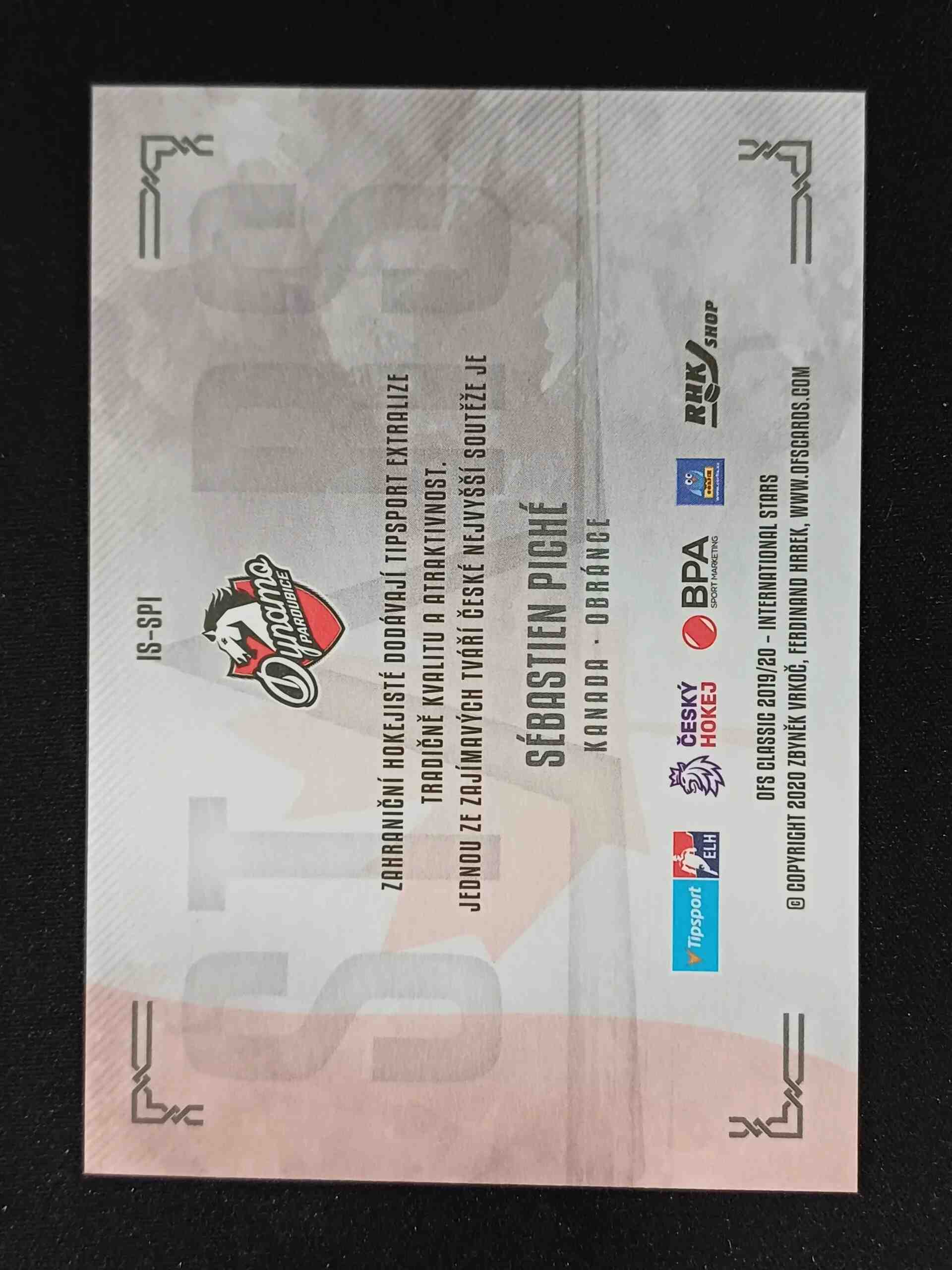 Sběratelská karta 2019/2020 OFS Classic International Stars TE IS-SPI Sébastien Piché Inzert