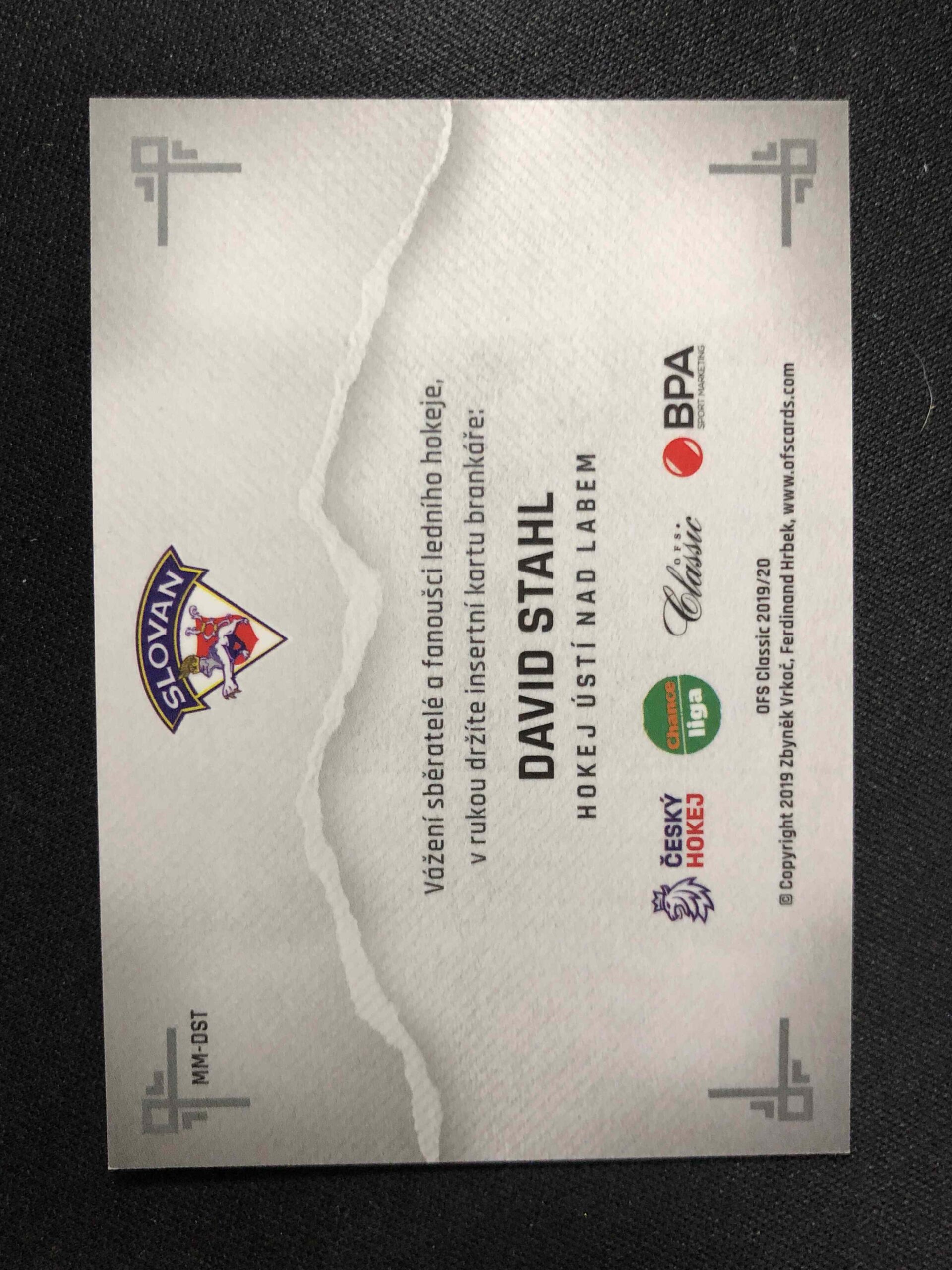 Sběratelská karta 2019/2020 OFS Classic Masked Men MM-DST David Stahl Inzert