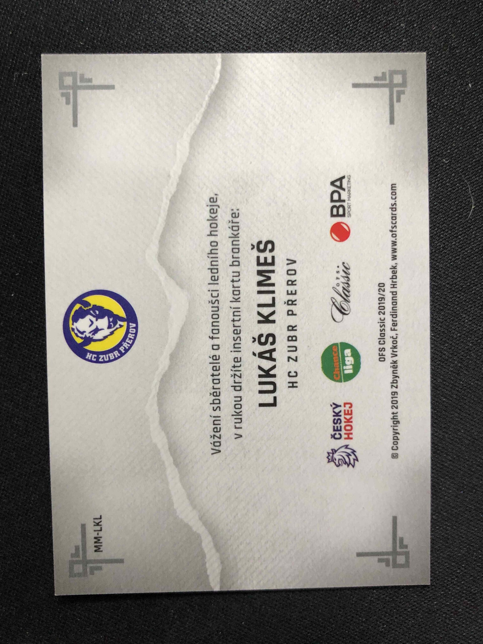 2019/2020 OFS Classic Masked Men MM-LKL Lukáš Klimeš Inzert