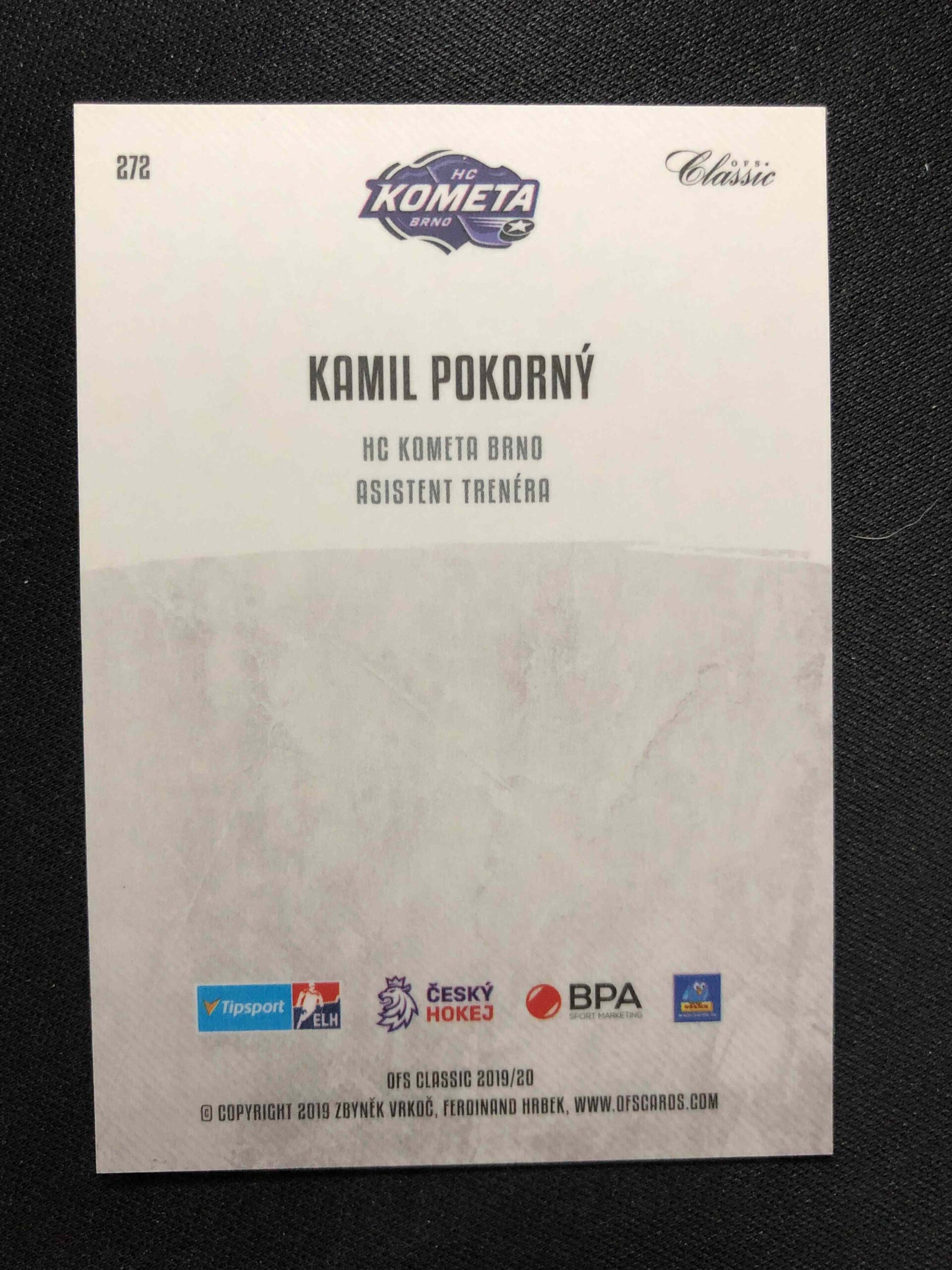 Sběratelská karta 2019/2020 OFS Classic Silver Sand 272 Kamil Pokorný Paralel 17/19