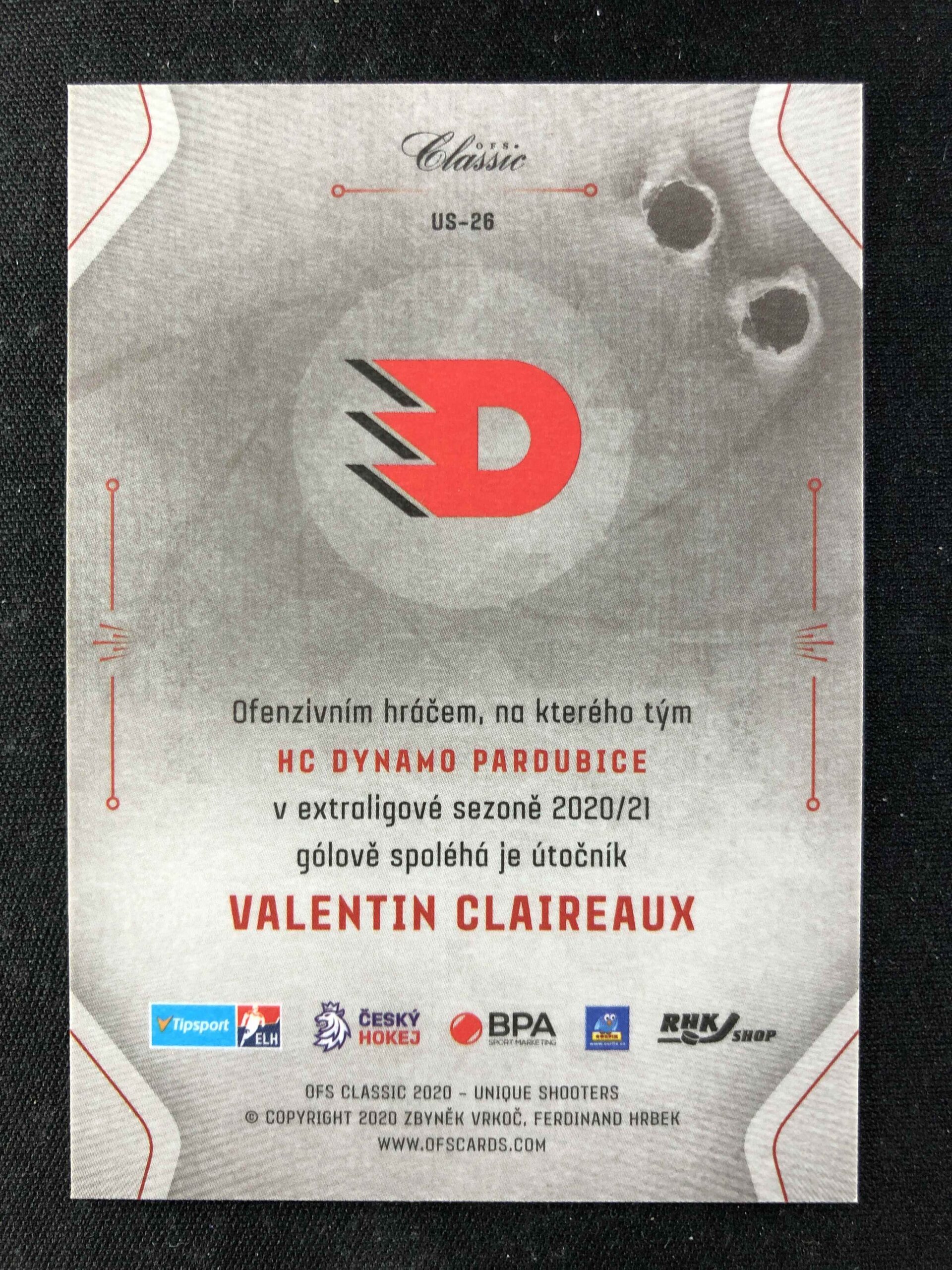 Sběratelská karta 2019/2020 OFS Classic Unique Shooters US-26 Valentin Claireaux Inzert