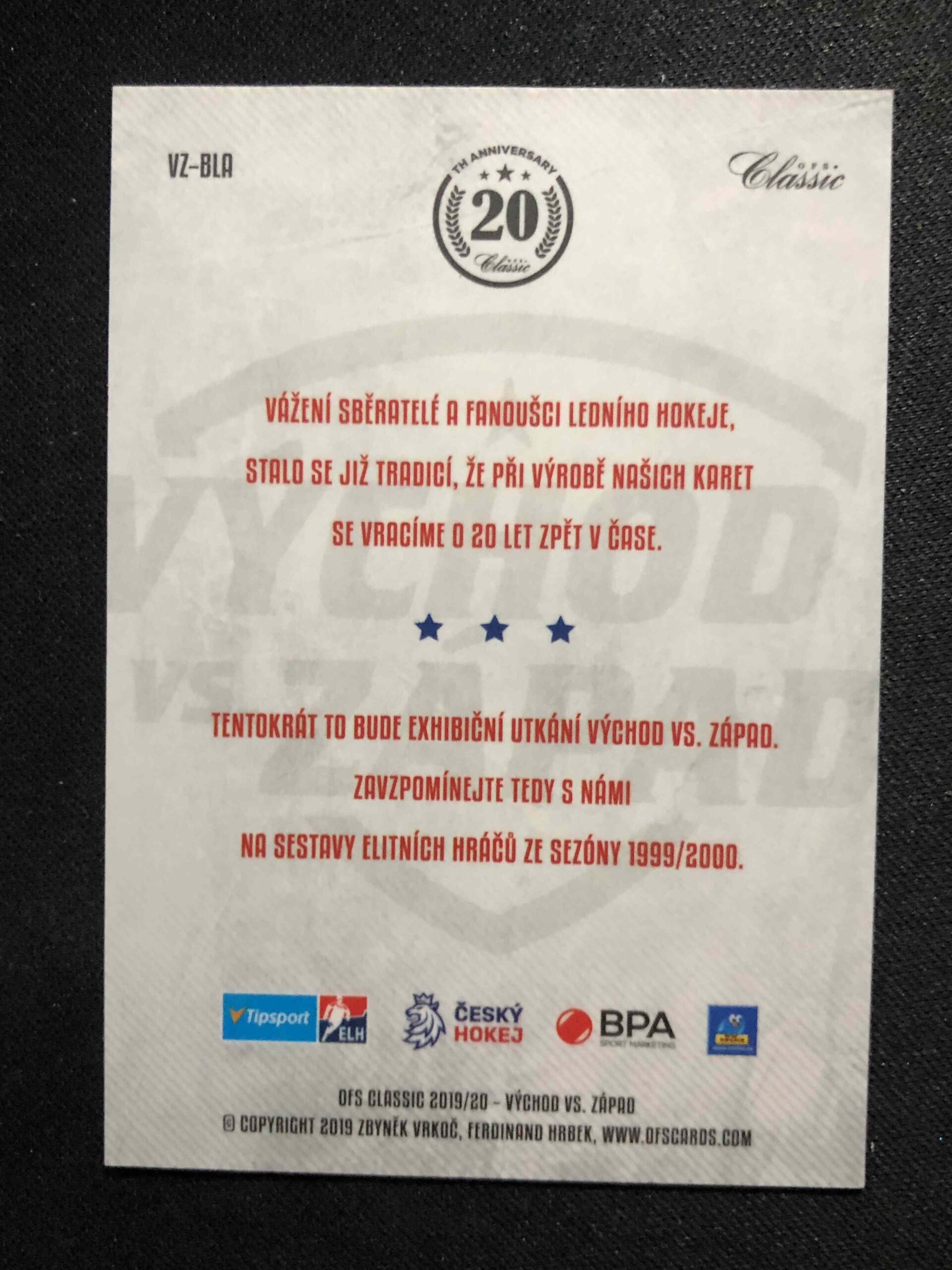 Sběratelská karta 2019/2020 OFS Classic Východ vs. Západ VZ-BLA Tomáš Blažek Inzert