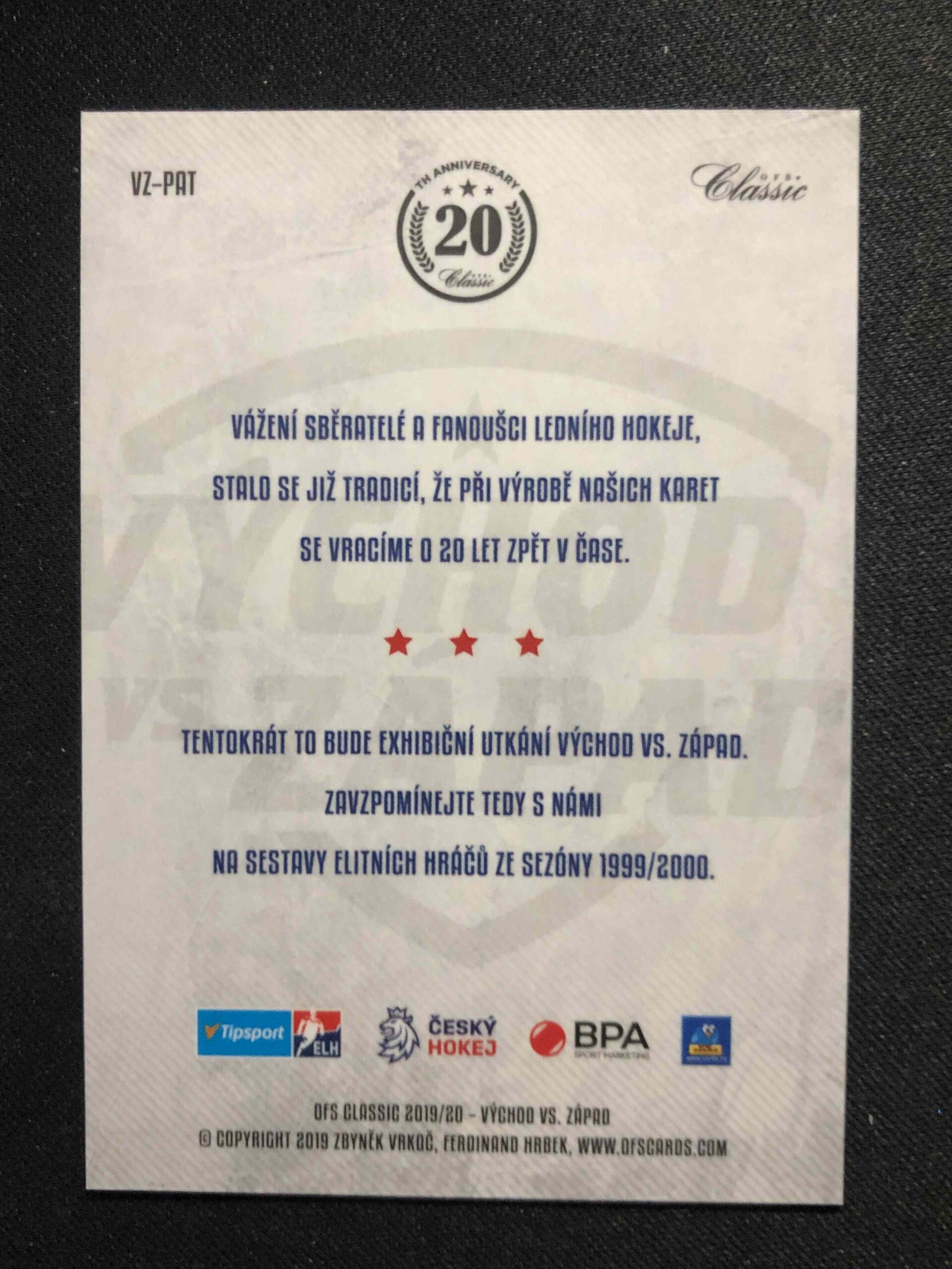 Sběratelská karta 2019/2020 OFS Classic Východ vs. Západ VZ-PAT Pavel Patera Inzert