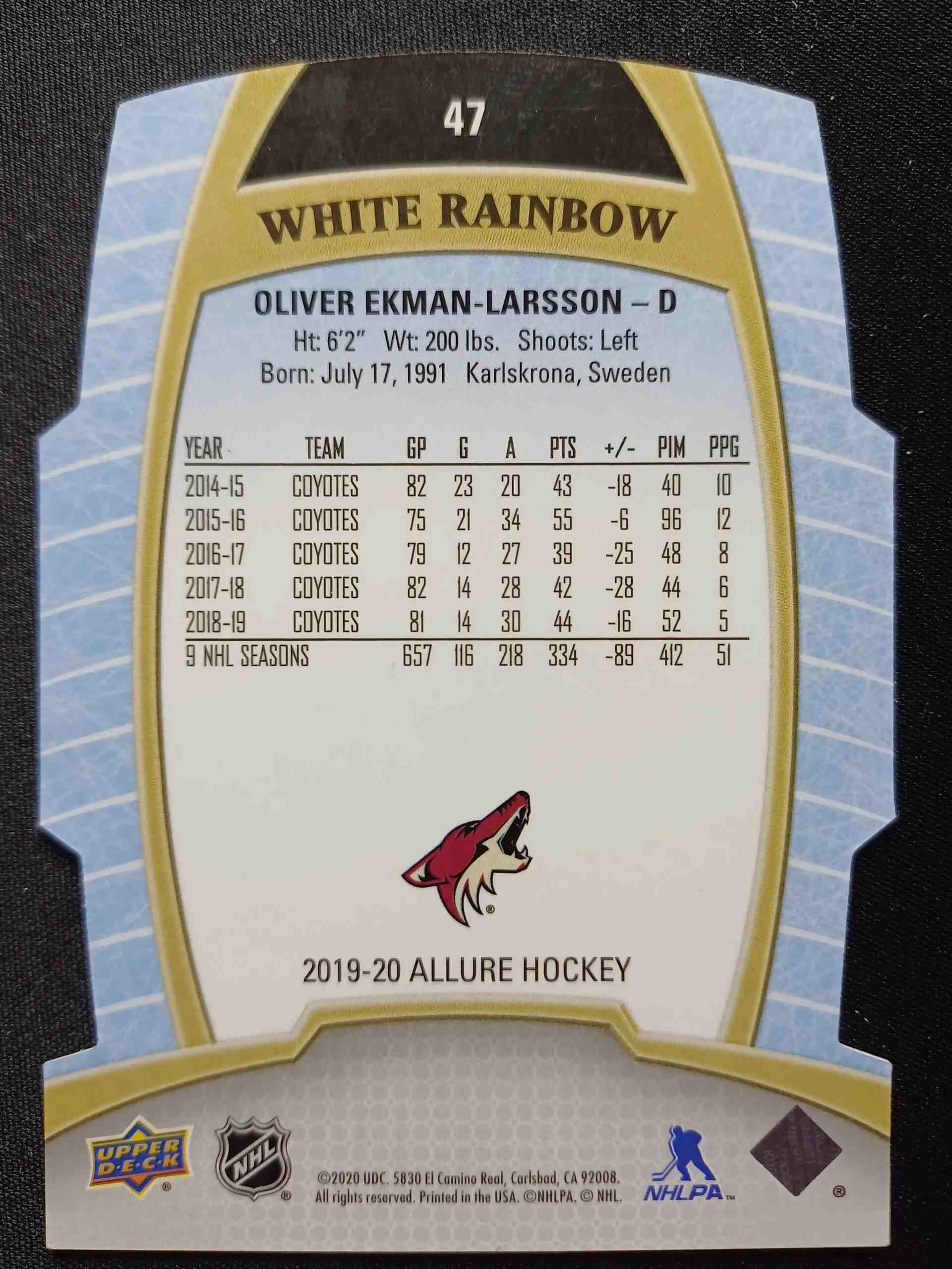Sběratelská karta 2019/2020 Upper Deck Allure White Rainbow 47 Oliver Ekman-Larsson Paralel