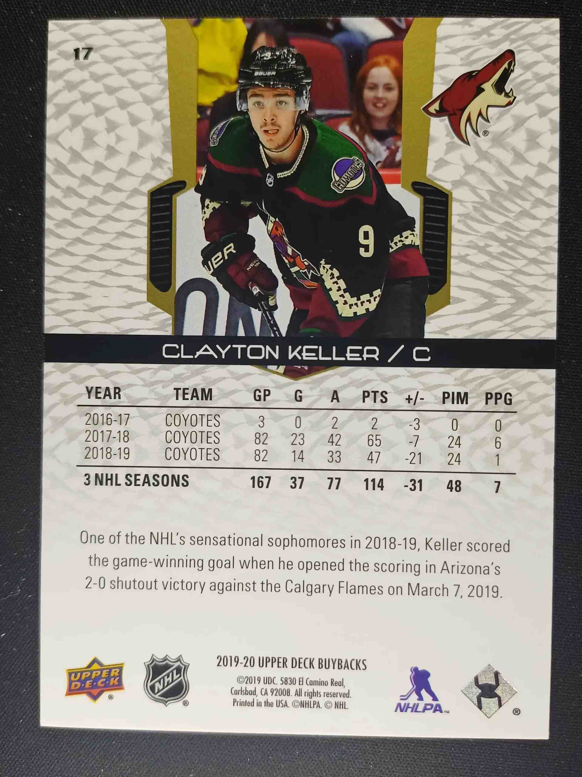 Sběratelská karta 2019/2020 Upper Deck Buybacks Gold 17 Clayton Keller Paralel 32/50