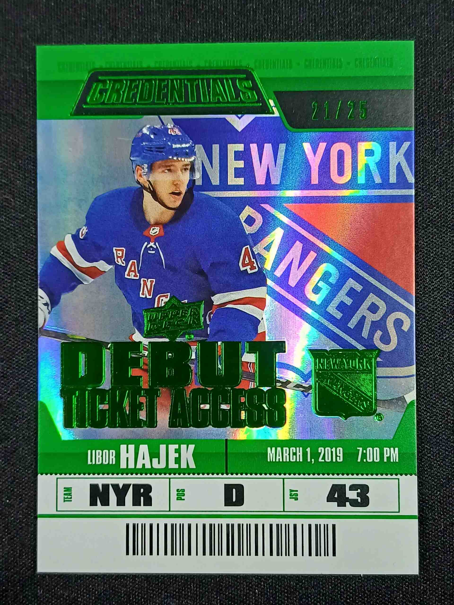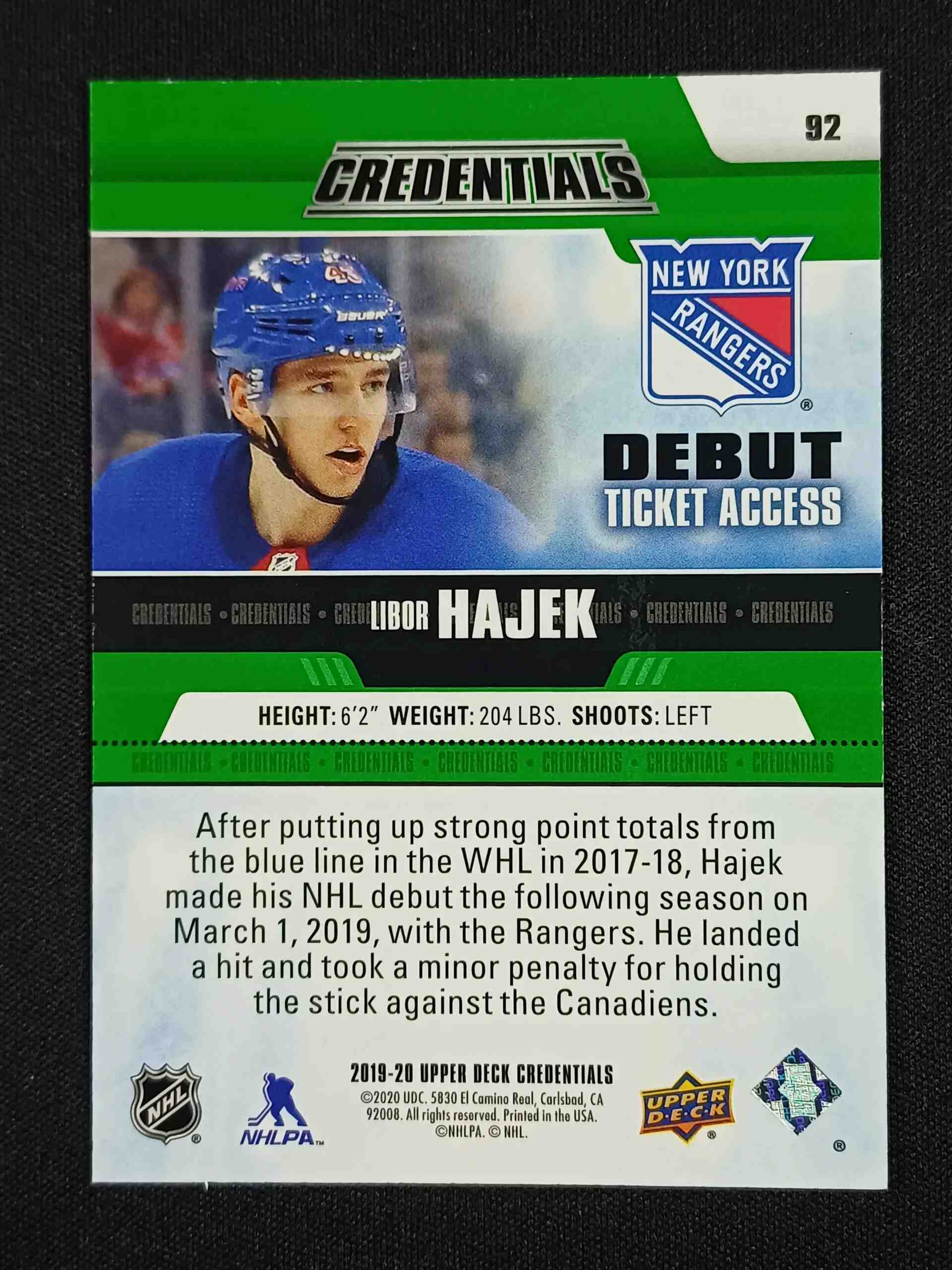 2019/2020 Upper Deck Credentials Debut Ticket Access 92 Libor Hajek Inzert 23/25