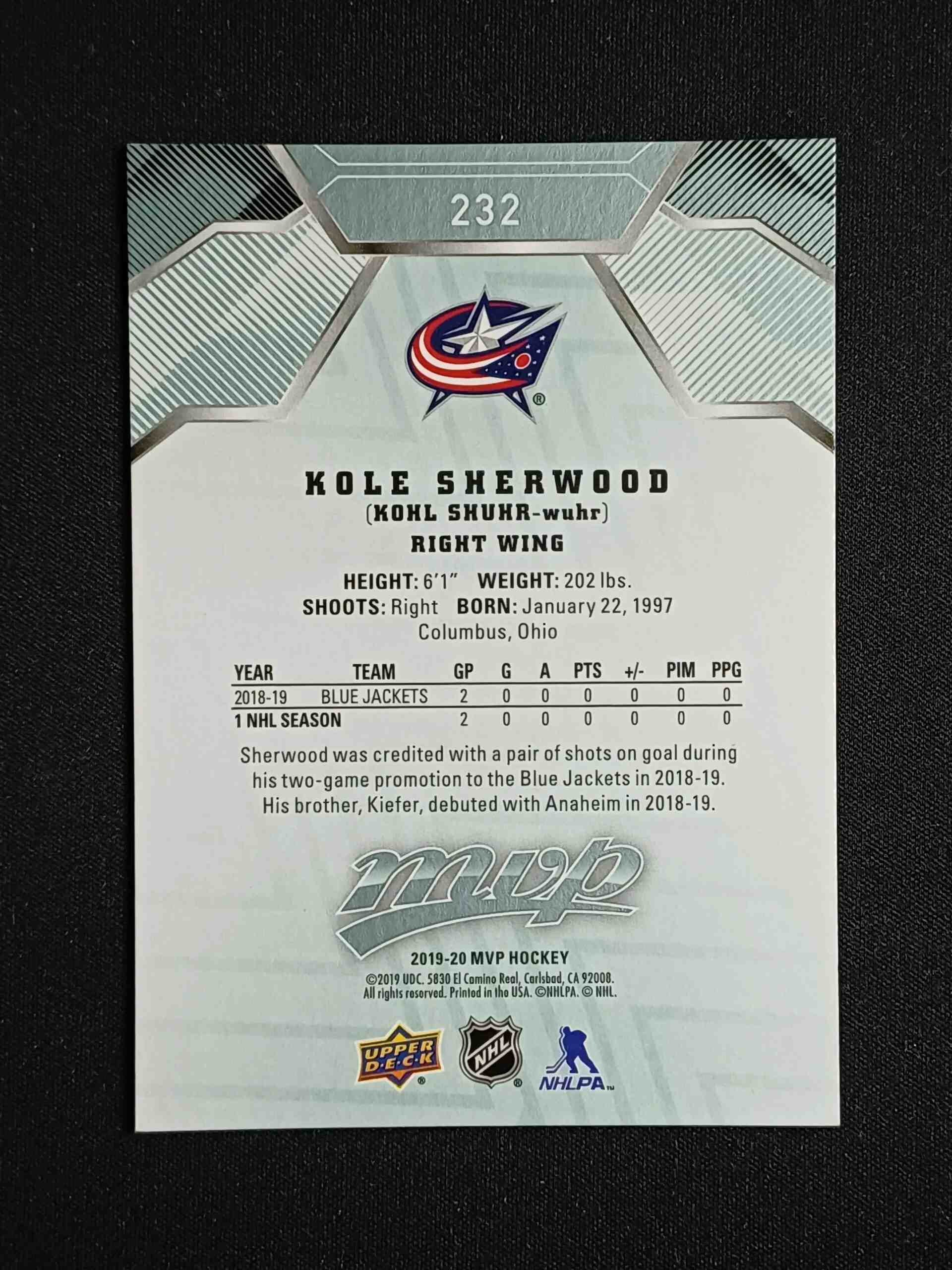 Sběratelská karta 2019/2020 Upper Deck MVP Base 232 Kole Sherwood
