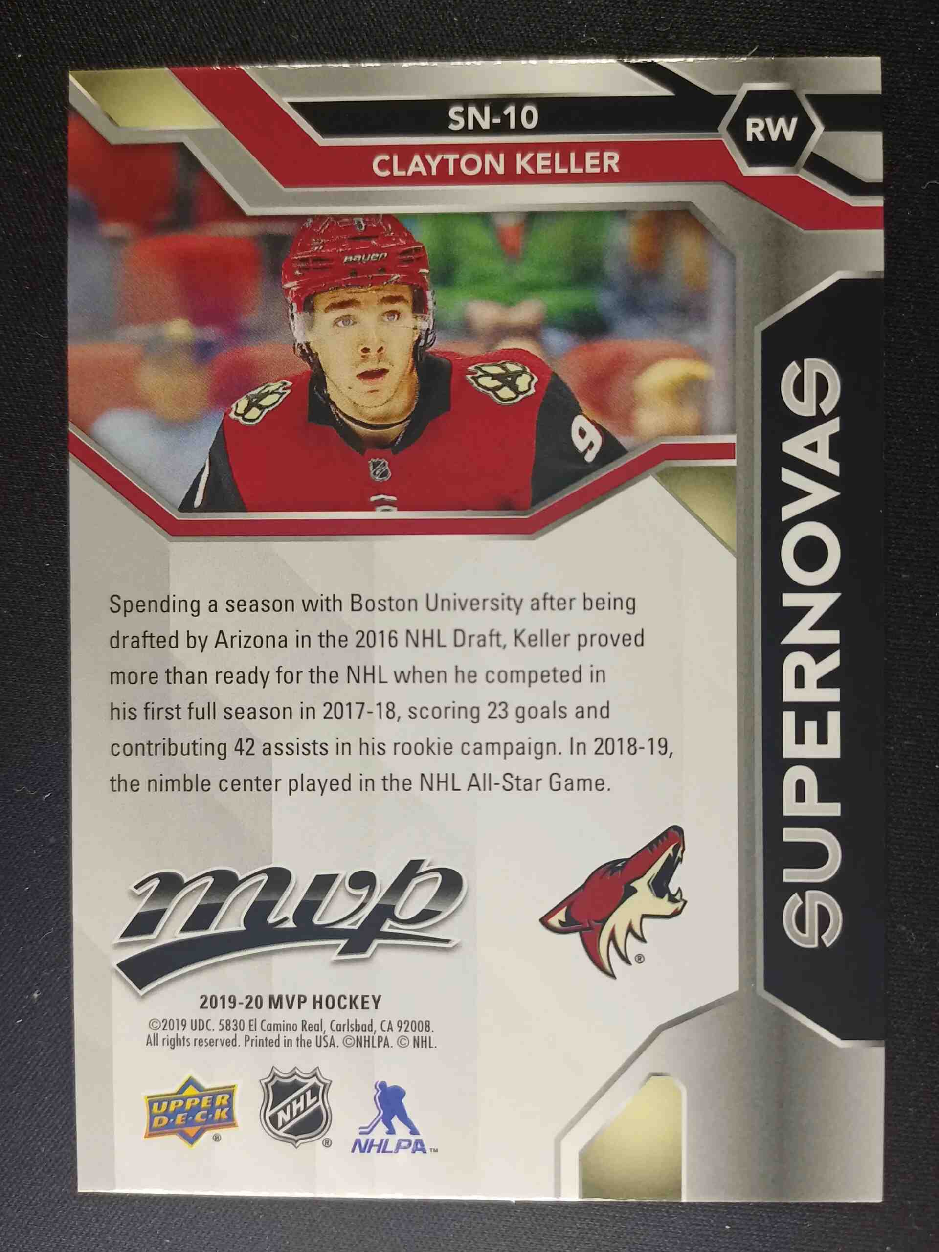 Sběratelská karta 2019/2020 Upper Deck MVP Supernovas SN-10 Clayton Keller Inzert
