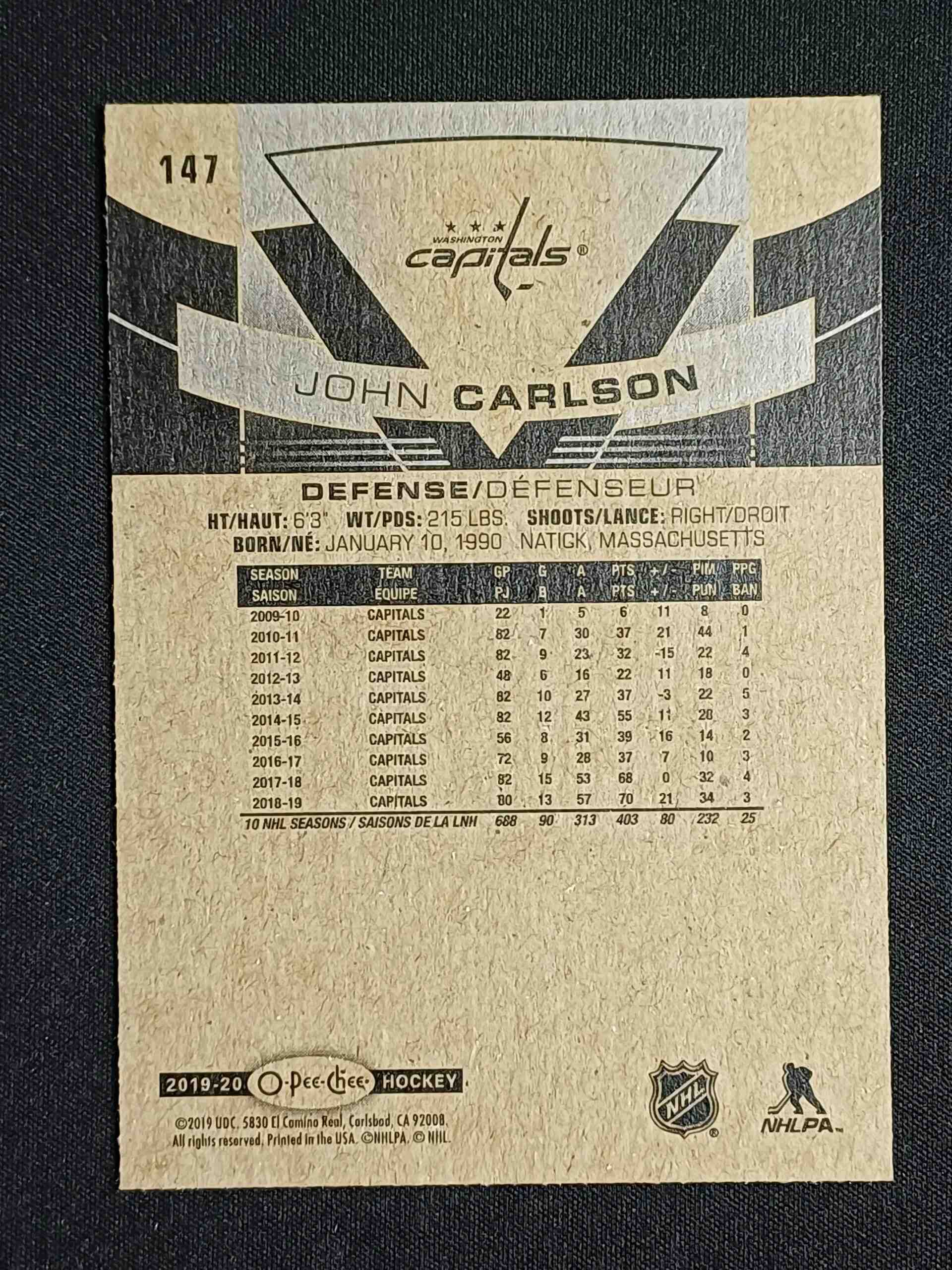Sběratelská karta 2019/2020 Upper Deck O-Pee-Chee Base 147 John Carlson