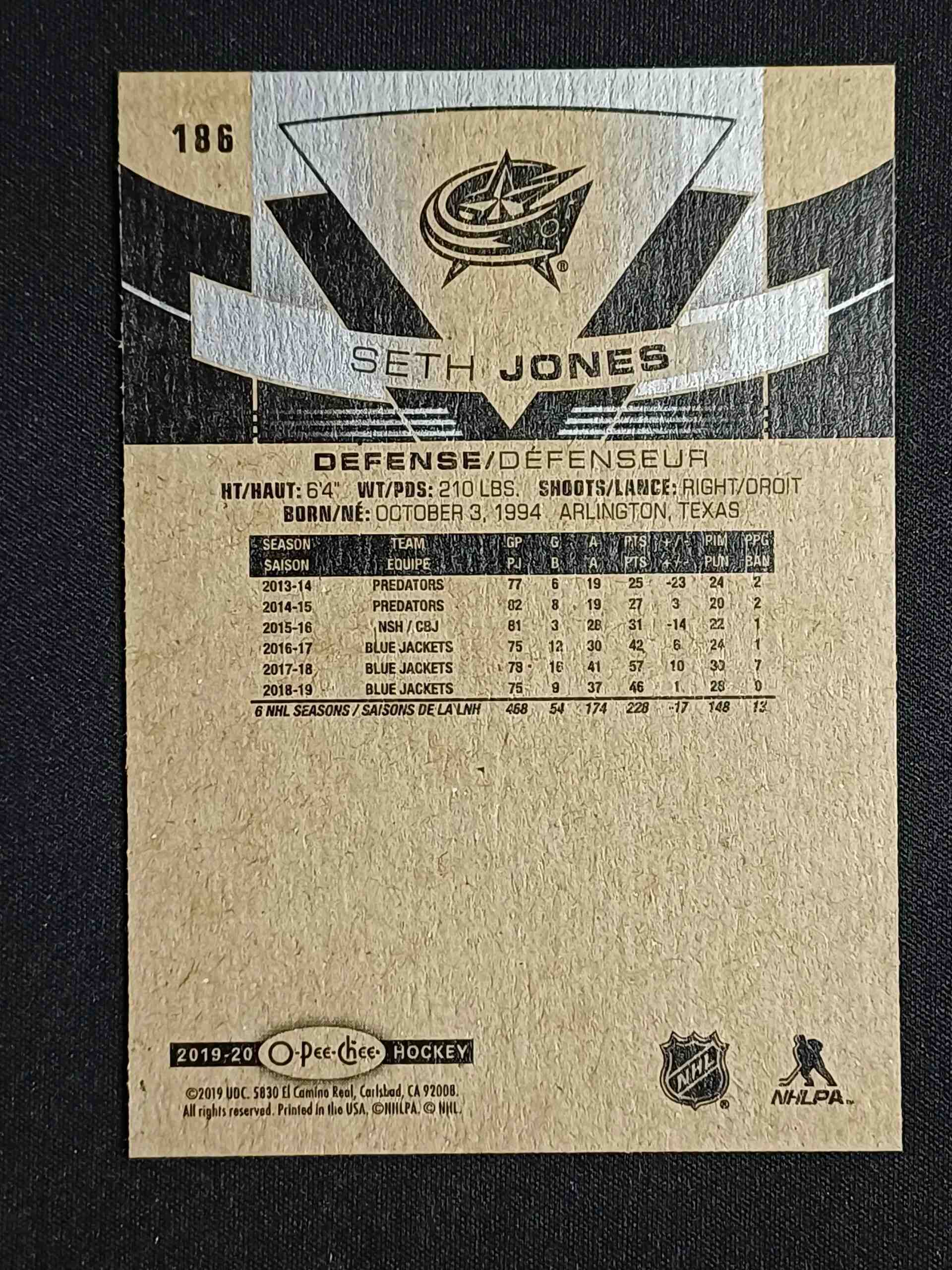 Sběratelská karta 2019/2020 Upper Deck O-Pee-Chee Base 186 Seth Jones