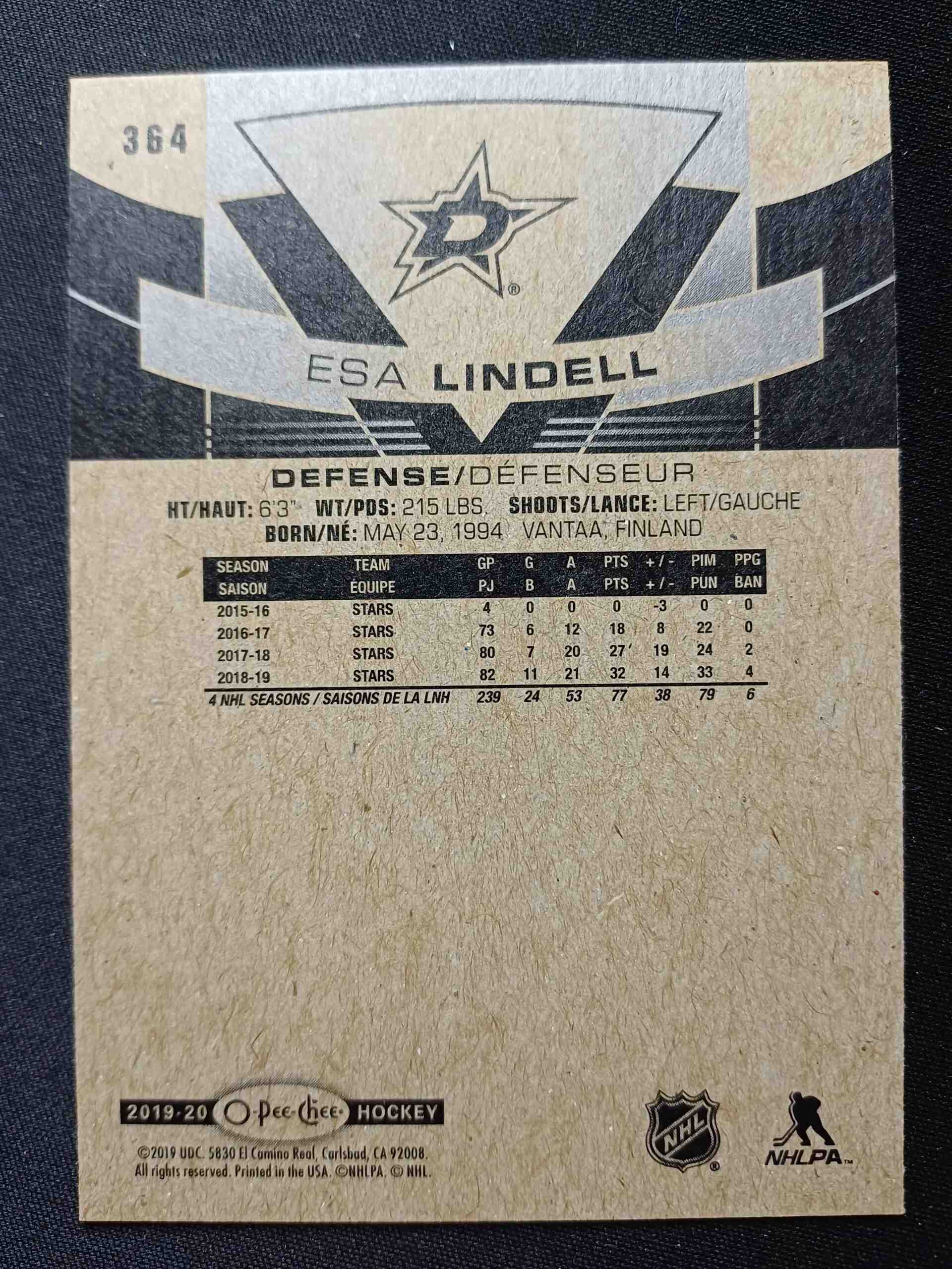 Sběratelská karta 2019/2020 Upper Deck O-Pee-Chee Blue Border 364 Esa Lindell Paralel