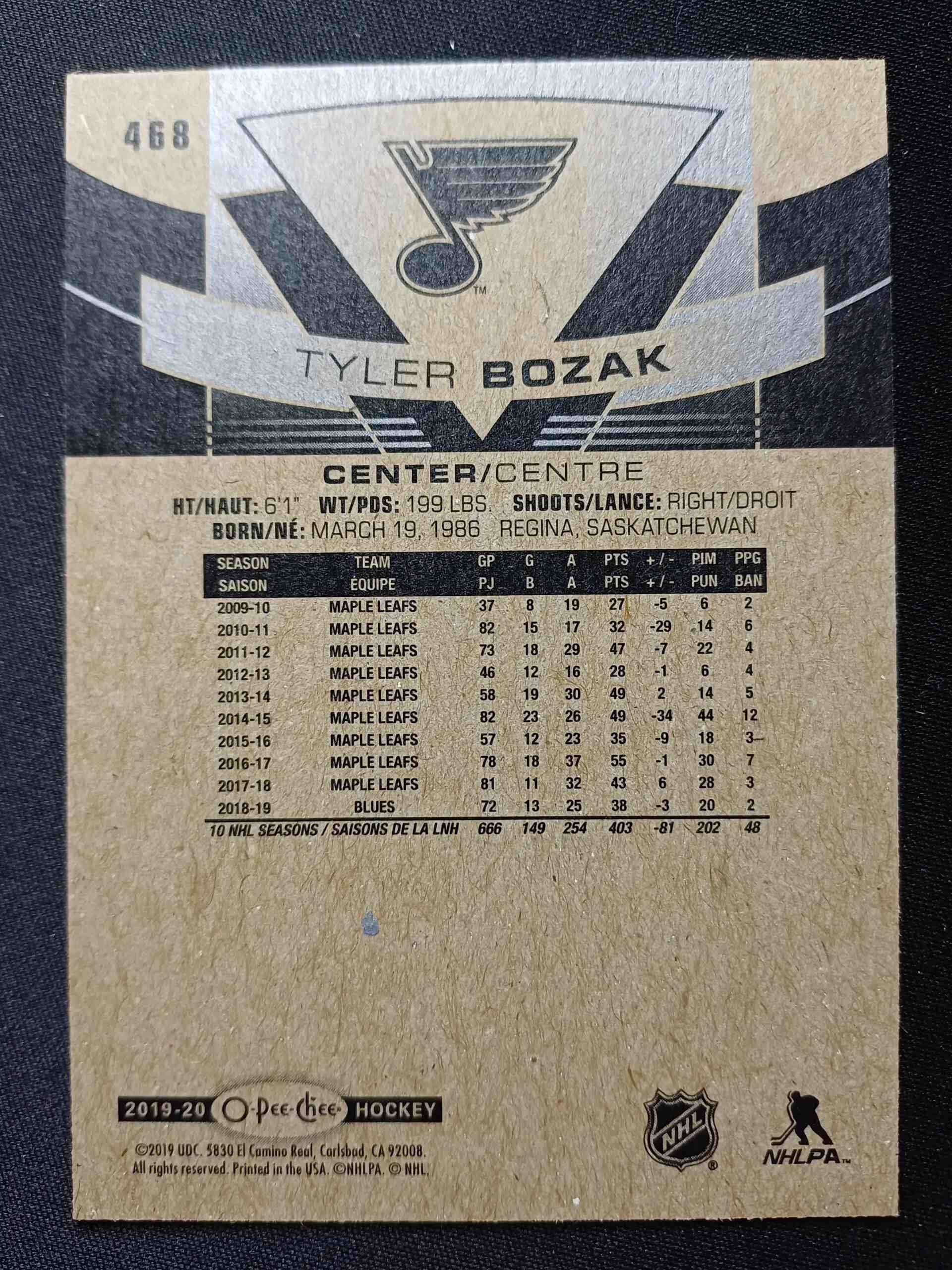 Sběratelská karta 2019/2020 Upper Deck O-Pee-Chee Blue Border 468 Tyler Bozak Paralel