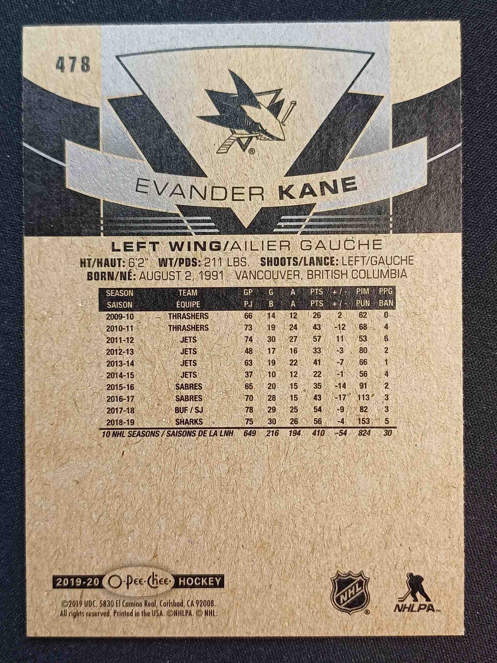 Sběratelská karta 2019/2020 Upper Deck O-Pee-Chee Blue Border 478 Evander Kane Paralel
