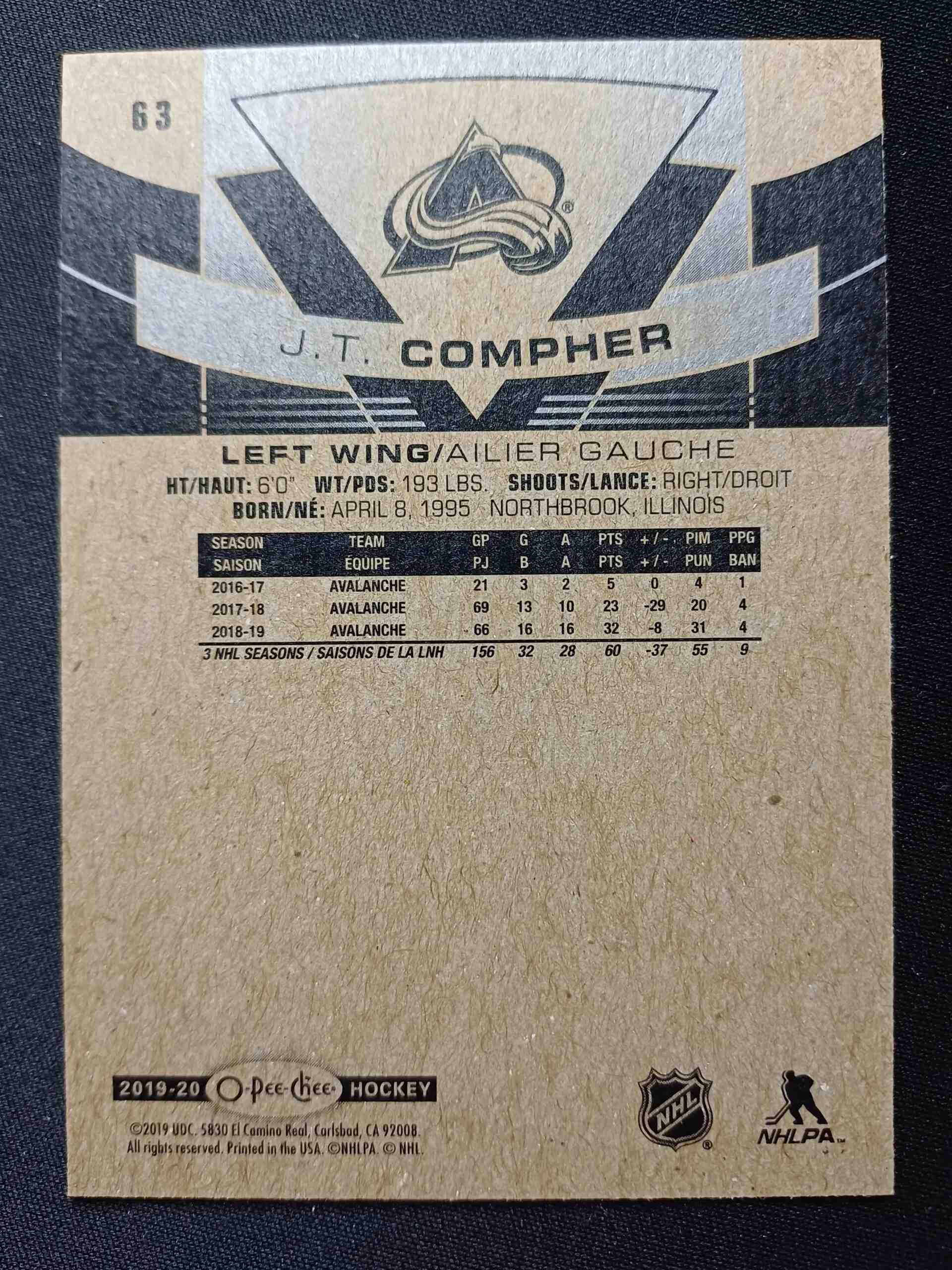 Sběratelská karta 2019/2020 Upper Deck O-Pee-Chee Blue Border 63 J.T. Compher Paralel