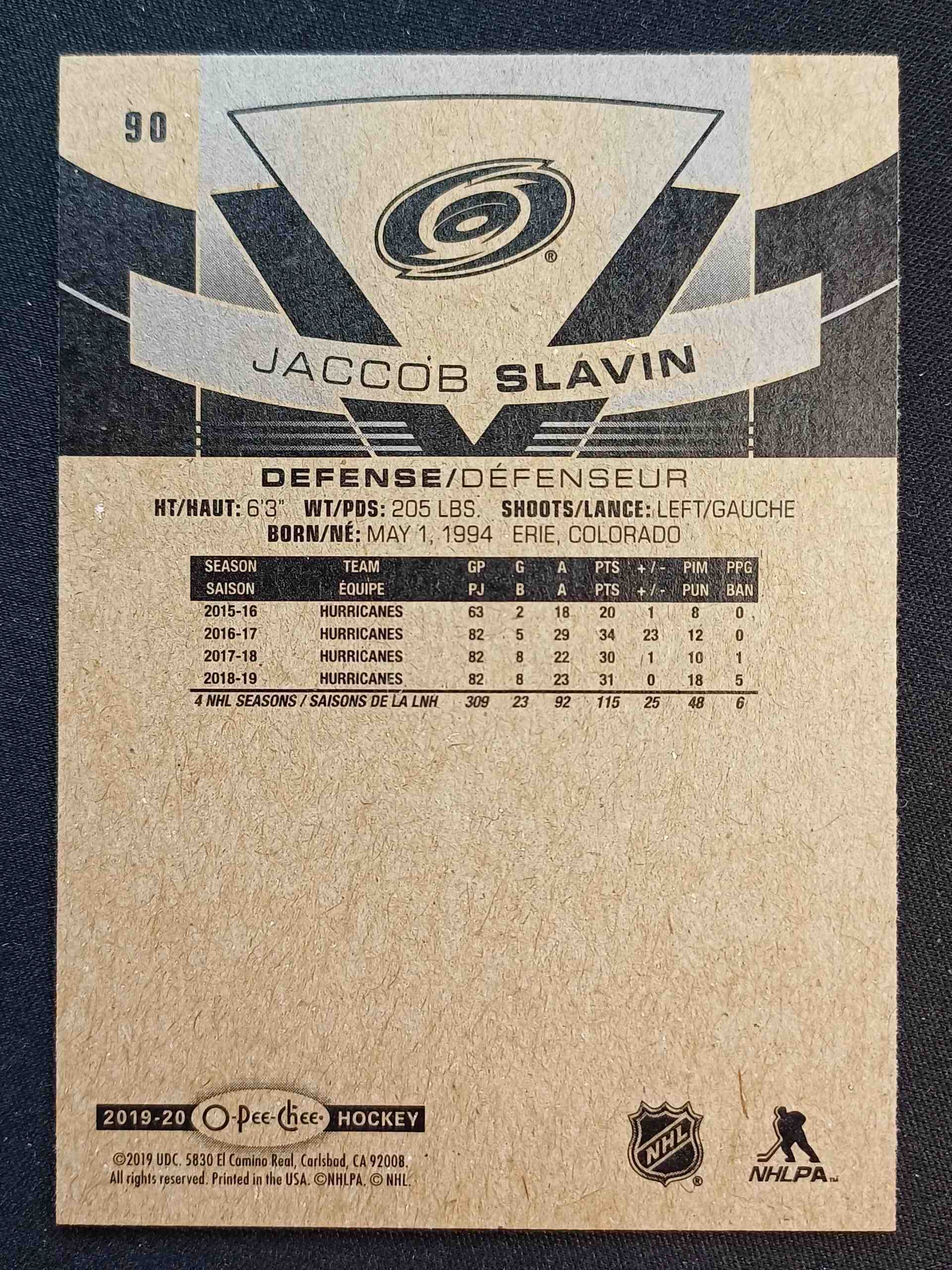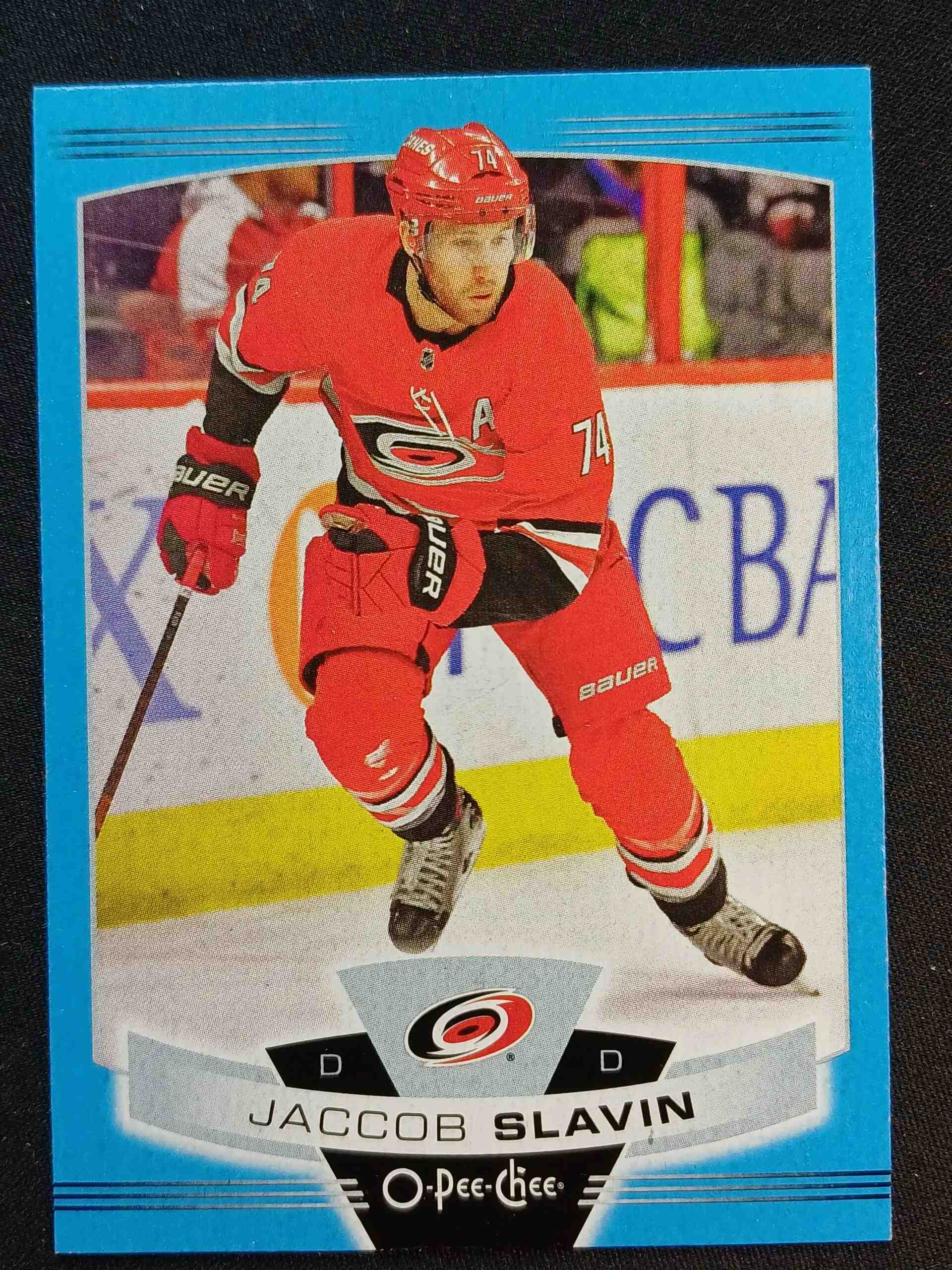 Sběratelská karta 2019/2020 Upper Deck O-Pee-Chee Blue Border 90 Jaccob Slavin Paralel