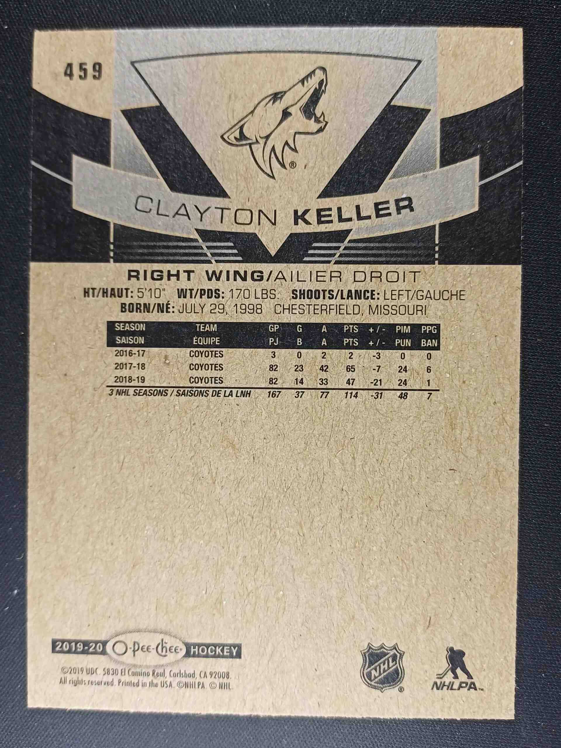 2019/2020 Upper Deck O-Pee-Chee Red Redemption 459 Clayton Keller Paralel