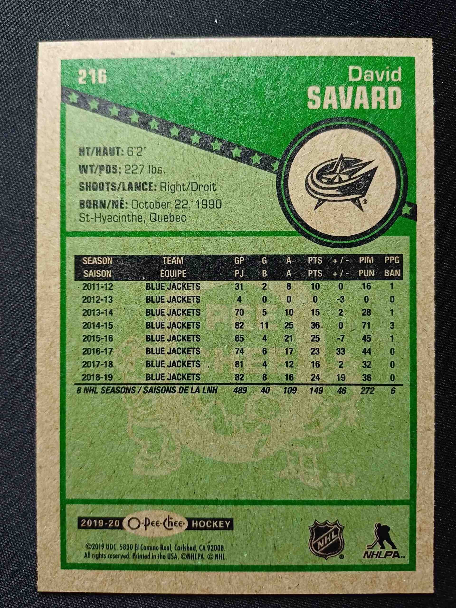 2019/2020 Upper Deck O-Pee-Chee Retro 216 David Savard Paralel