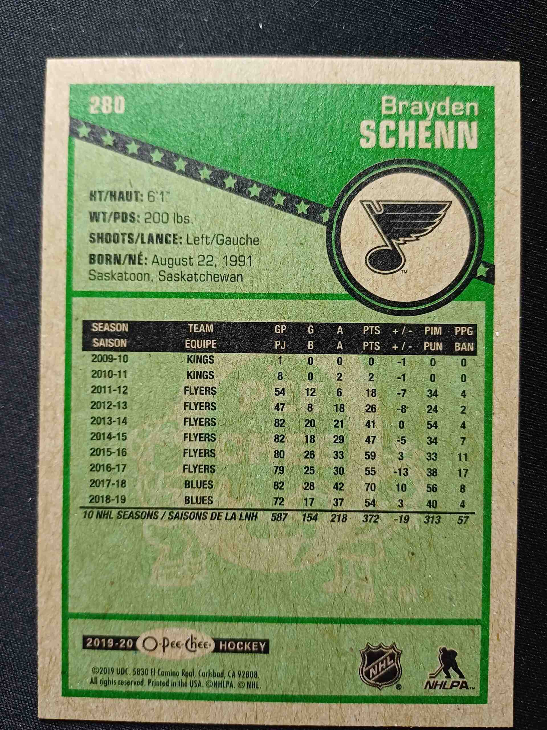Sběratelská karta 2019/2020 Upper Deck O-Pee-Chee Retro 280 Brayden Schenn Paralel