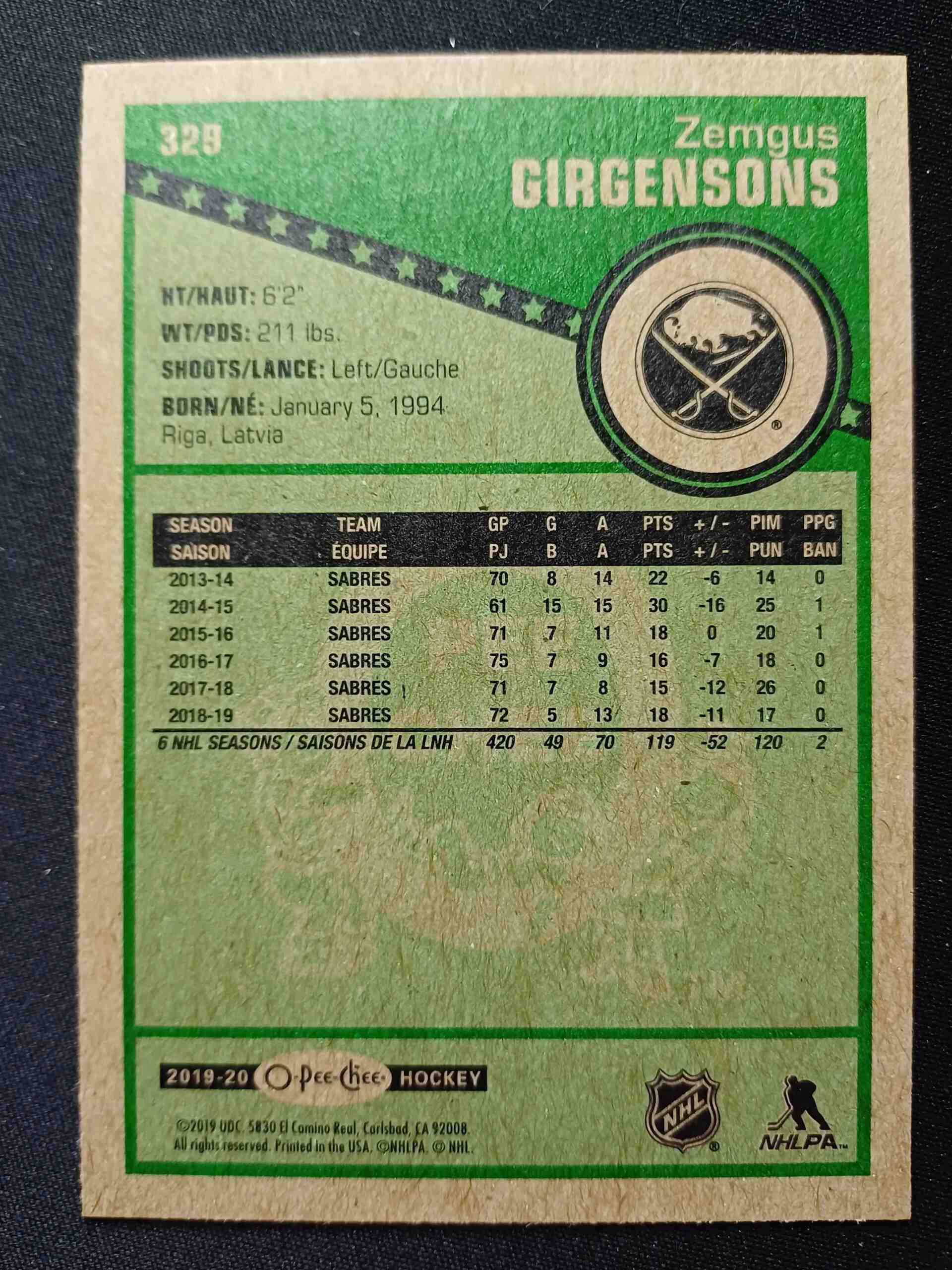 Sběratelská karta 2019/2020 Upper Deck O-Pee-Chee Retro 329 Zemgus Girgensons Paralel