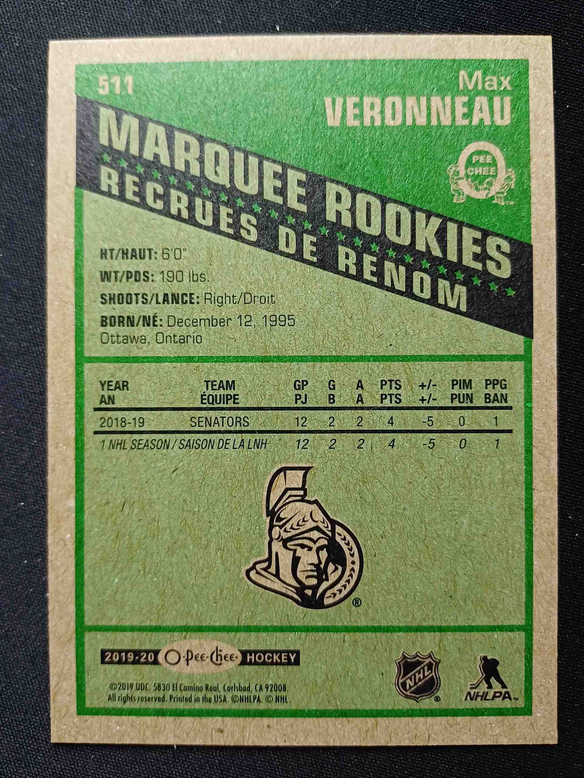Sběratelská karta 2019/2020 Upper Deck O-Pee-Chee Retro Marquee Rookie 511 Max Veronneau Paralel