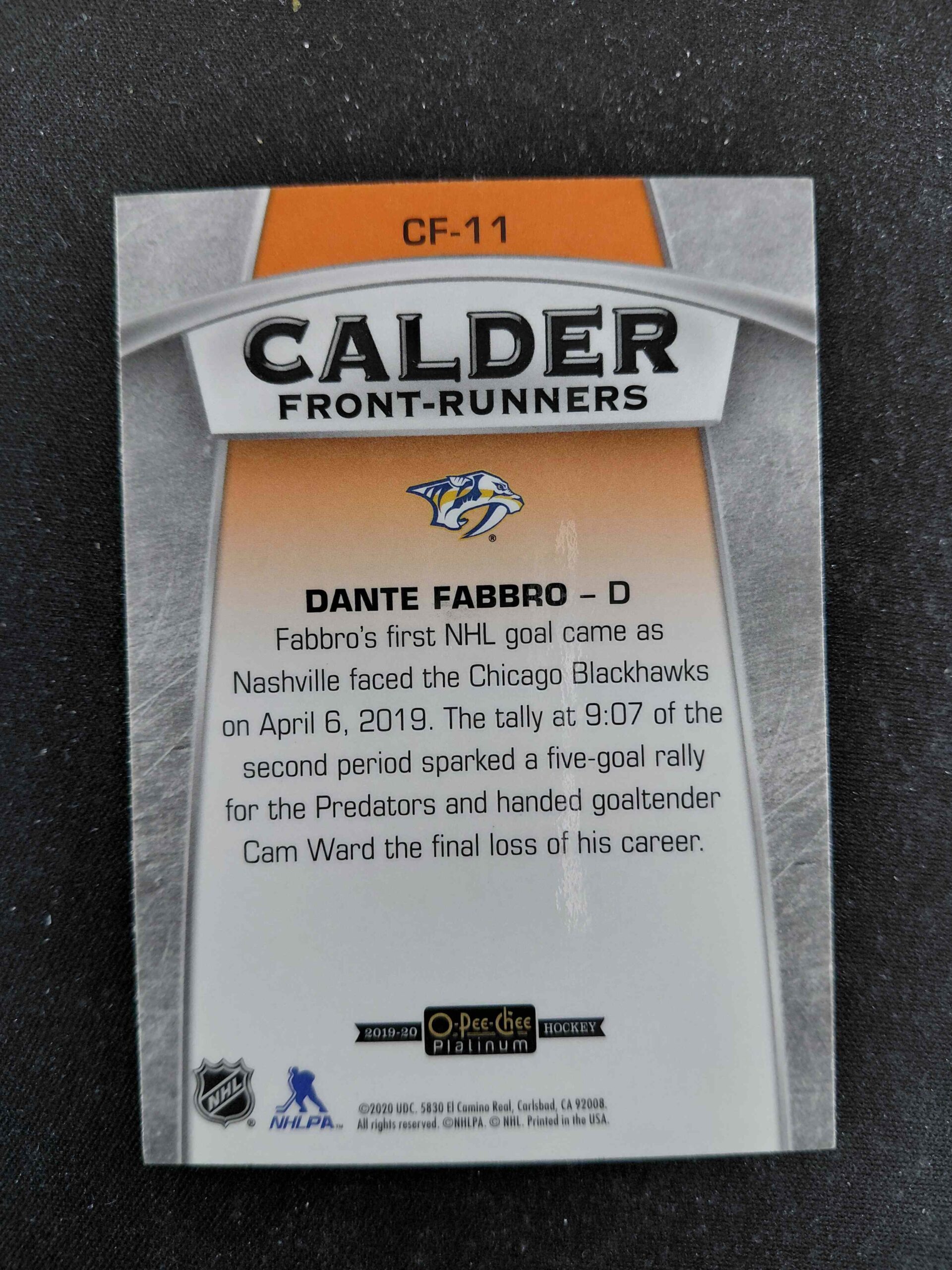 2019/2020 Upper Deck OPC Platinum Calder Front-Runners CF-11 Dante Fabro Inzert