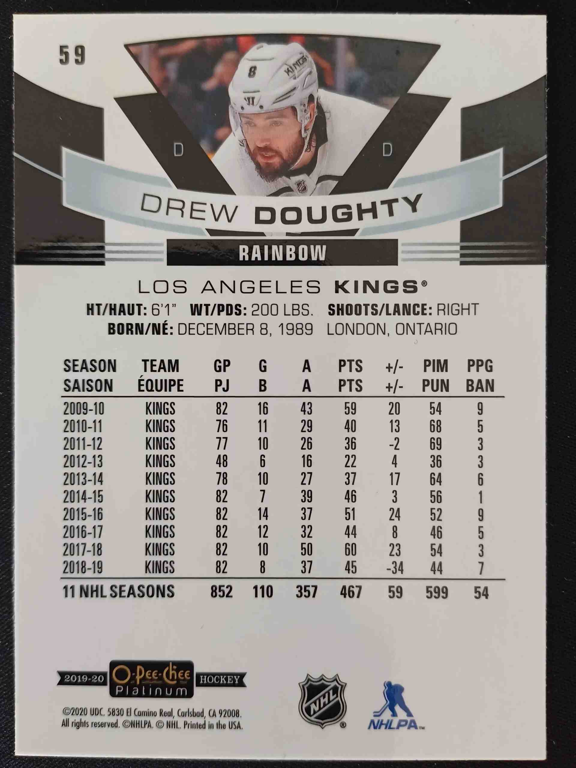 Sběratelská karta 2019/2020 Upper Deck OPC Platinum Rainbow 59 Drew Doughty Paralel