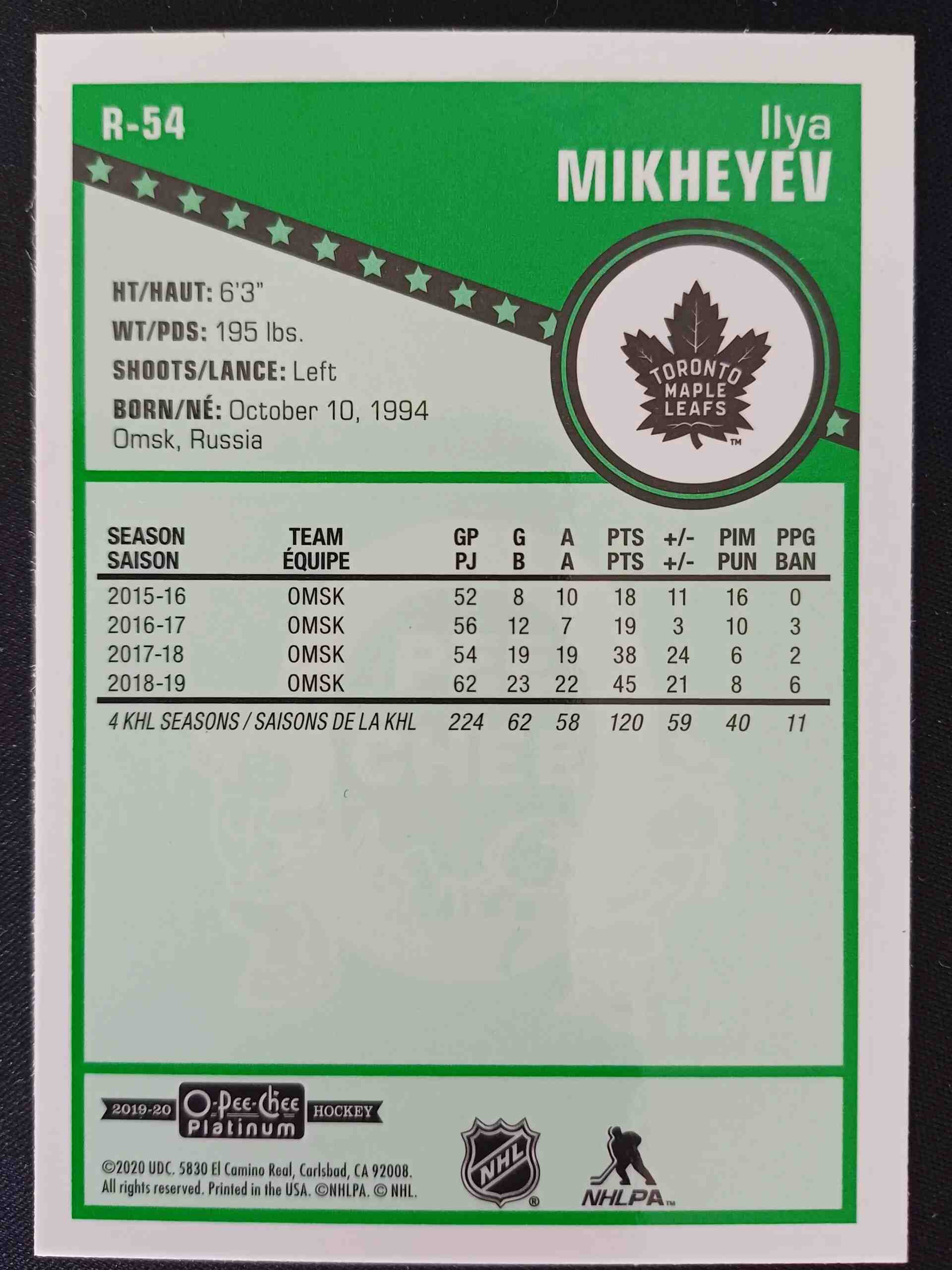 Sběratelská karta 2019/2020 Upper Deck OPC Platinum Retro Marquee Rookie R-54 Ilya Mikheyev Paralel
