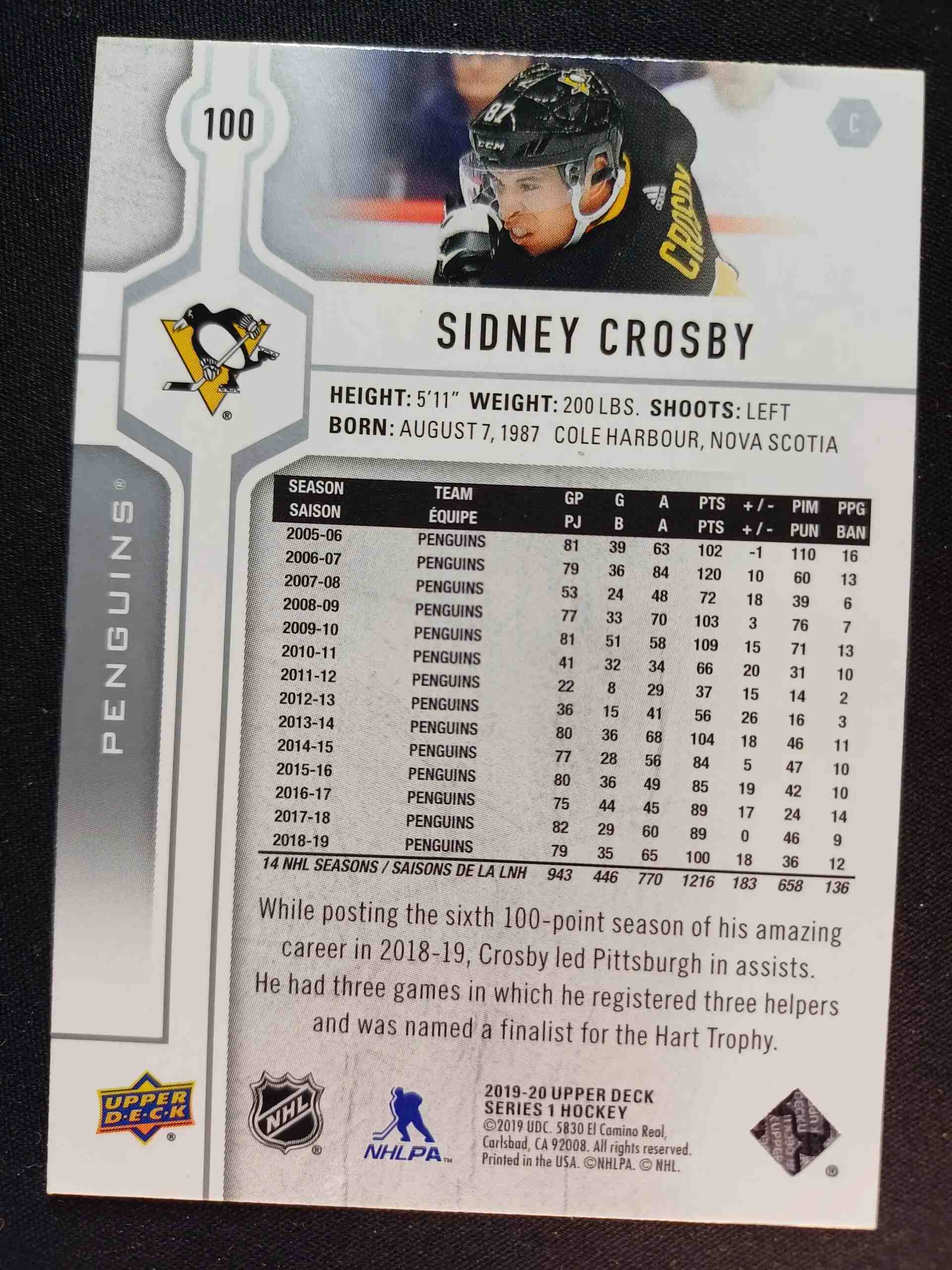 Sběratelská karta 2019/2020 Upper Deck Series 1 Base 100 Sidney Crosby
