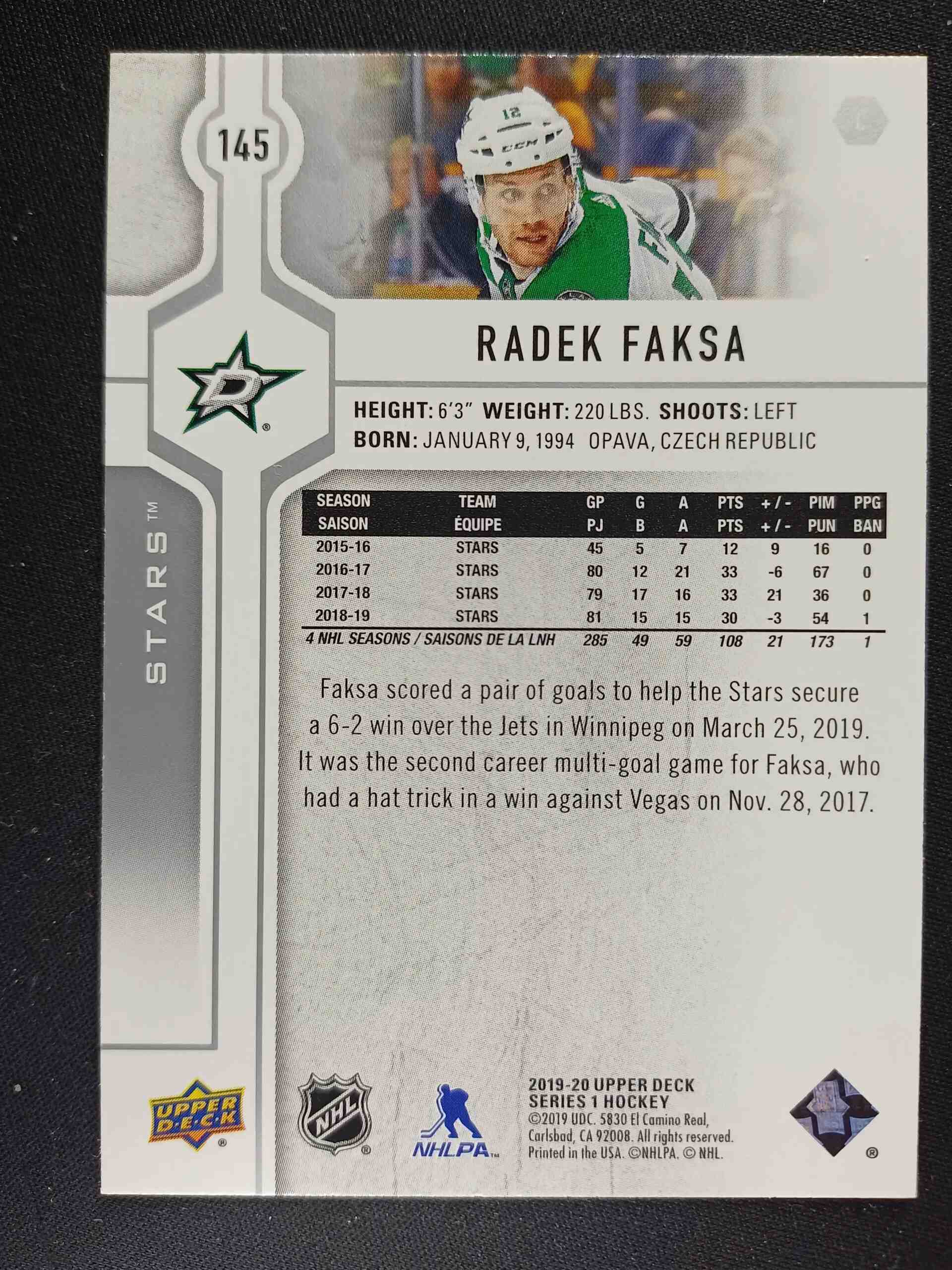Sběratelská karta 2019/2020 Upper Deck Series 1 Base 145 Radek Faksa