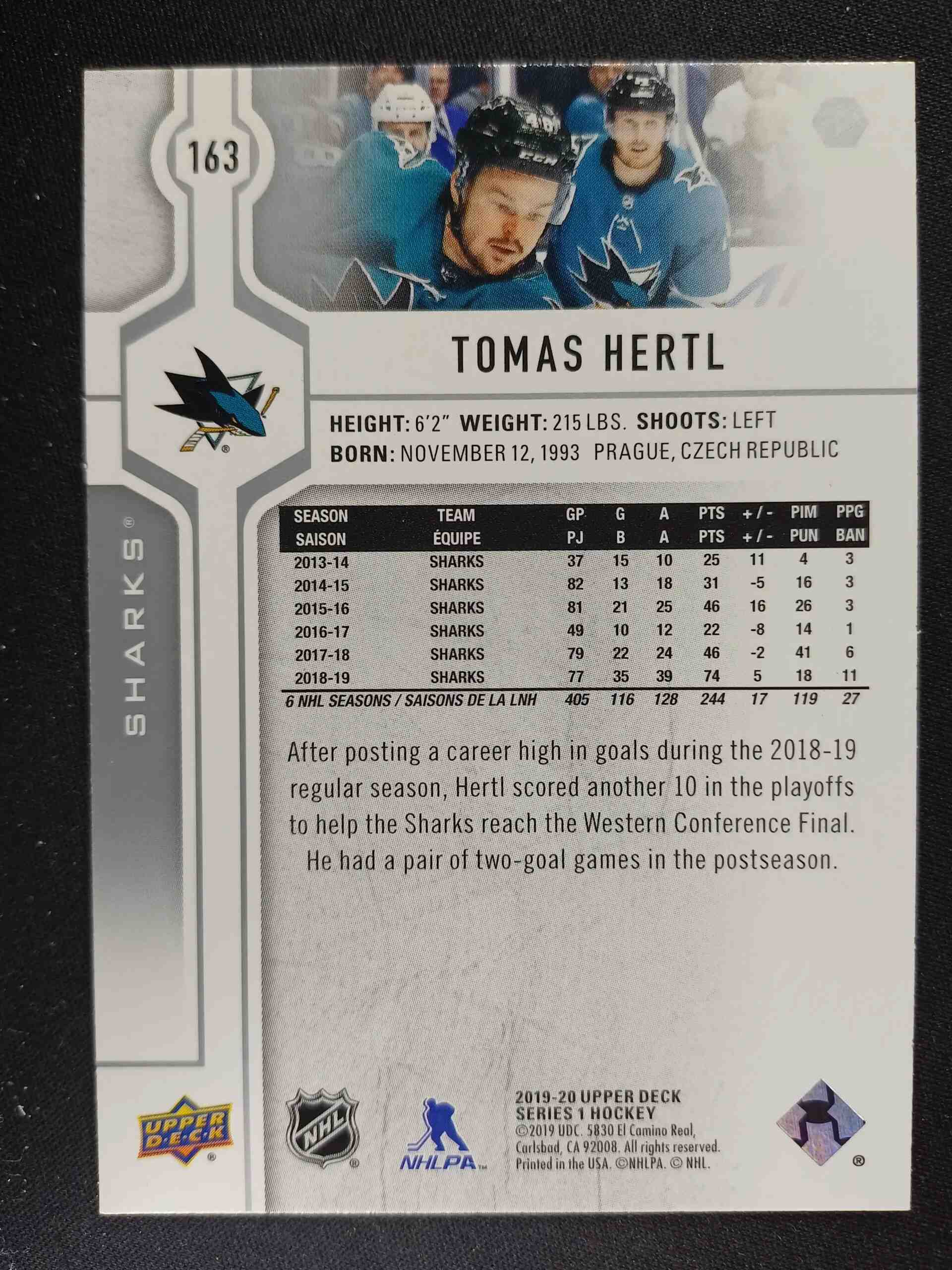 Sběratelská karta 2019/2020 Upper Deck Series 1 Base 163 Tomas Hertl