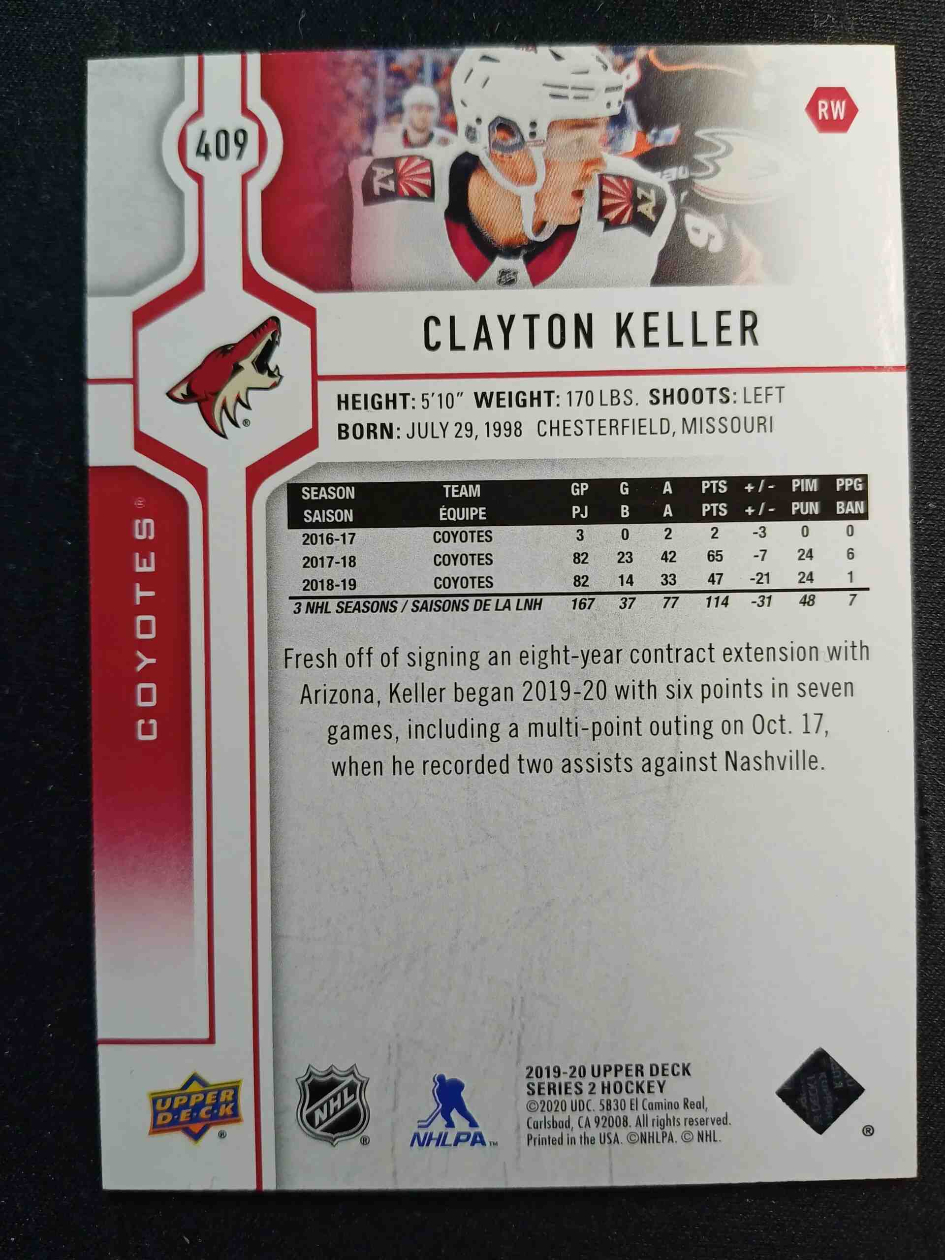 Sběratelská karta 2019/2020 Upper Deck Series 2 Base Exclusives 409 Clayton Keller Paralel 031/100