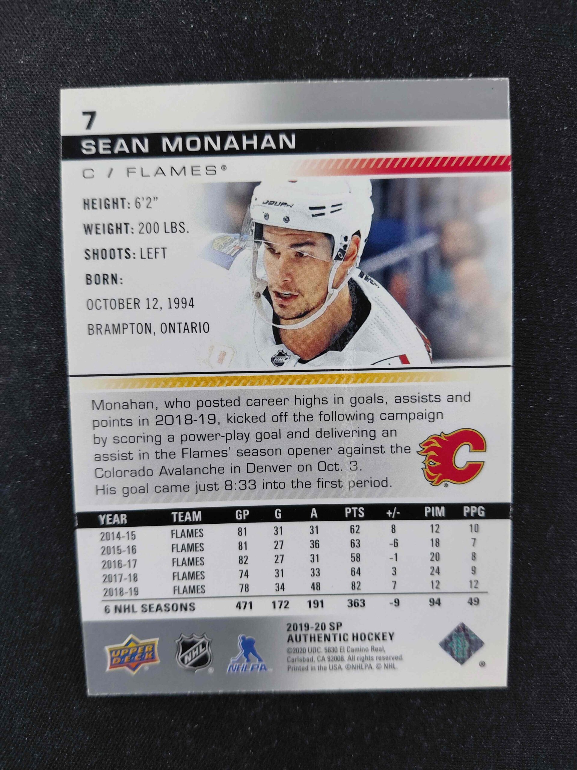 Sběratelská karta 2019/2020 Upper Deck SP Authentic Base 7 Sean Monahan