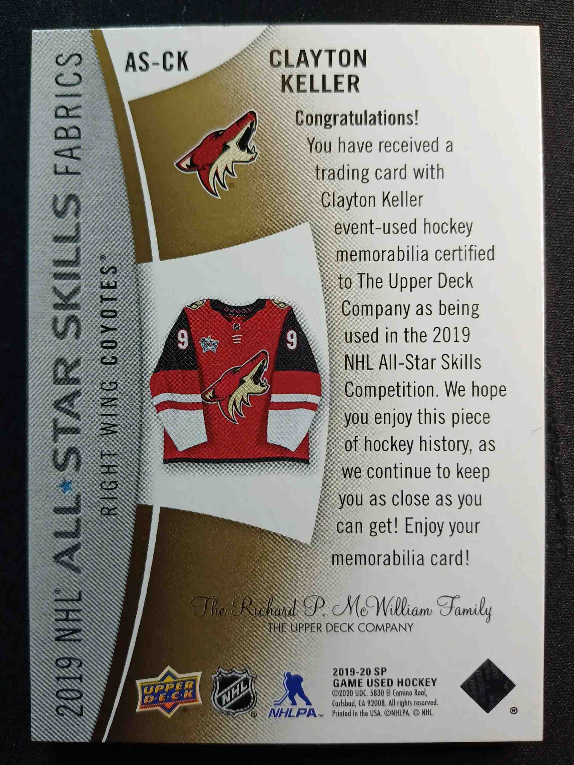 Sběratelská karta 2019/2020 Upper Deck SPGU All-Star Skills Fabric Patch AS-CK Clayton Keller Patch 19/35