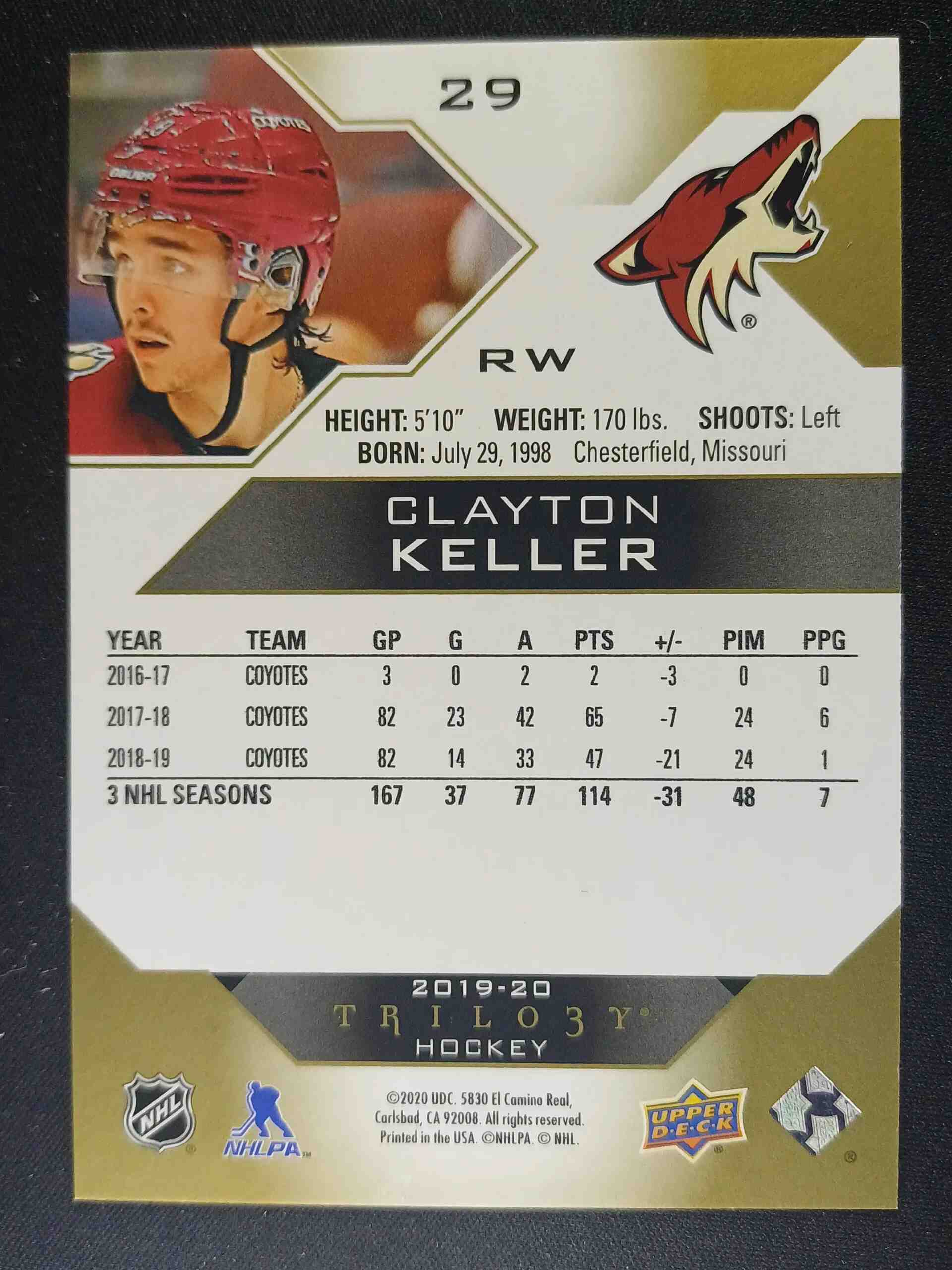 Sběratelská karta 2019/2020 Upper Deck Trilogy Base 29 Clayton Keller