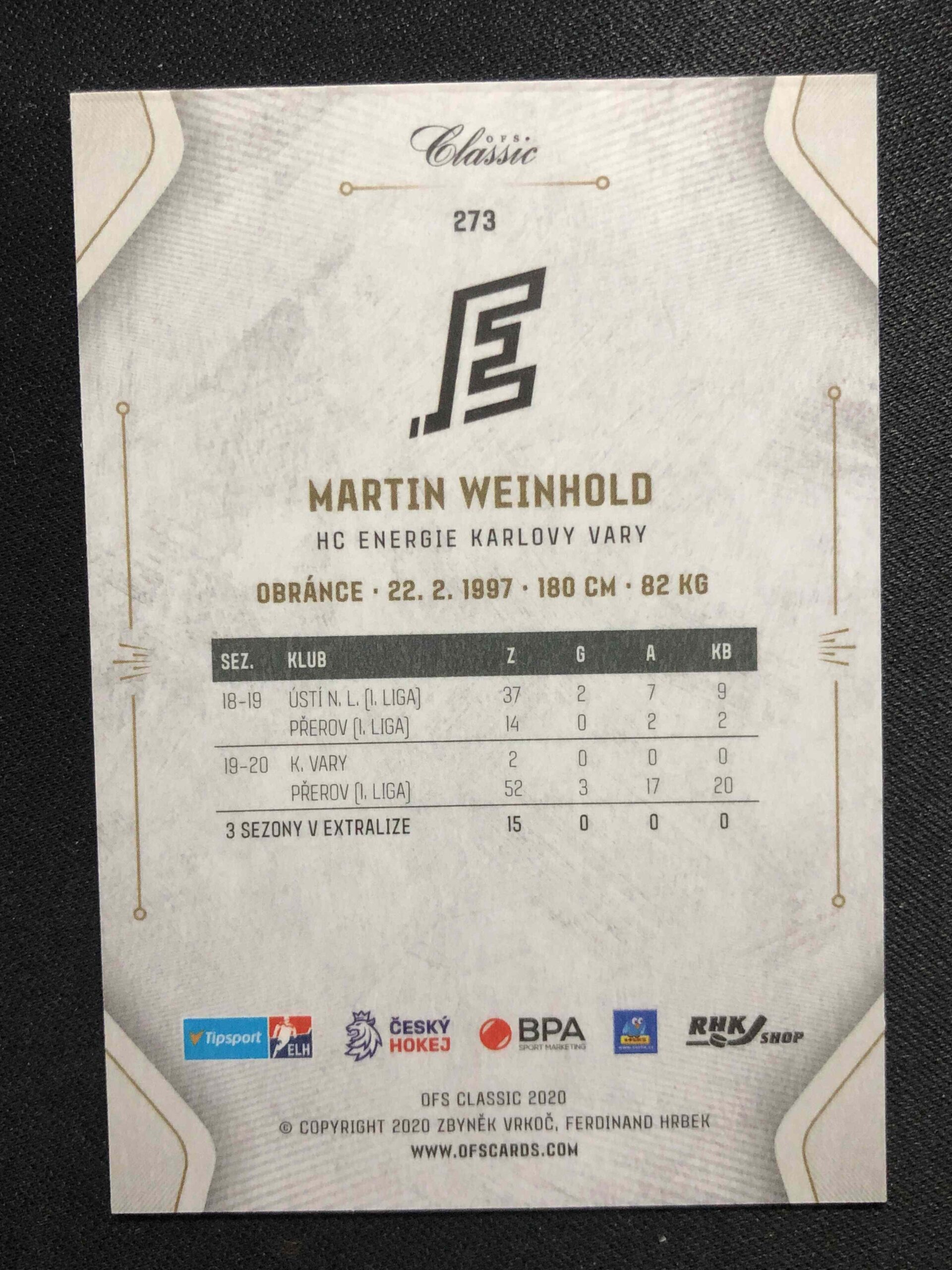 Sběratelská karta 2020/2021 OFS Classic Blue Aquadrop 273 Martin Weinhold Paralel 4/7