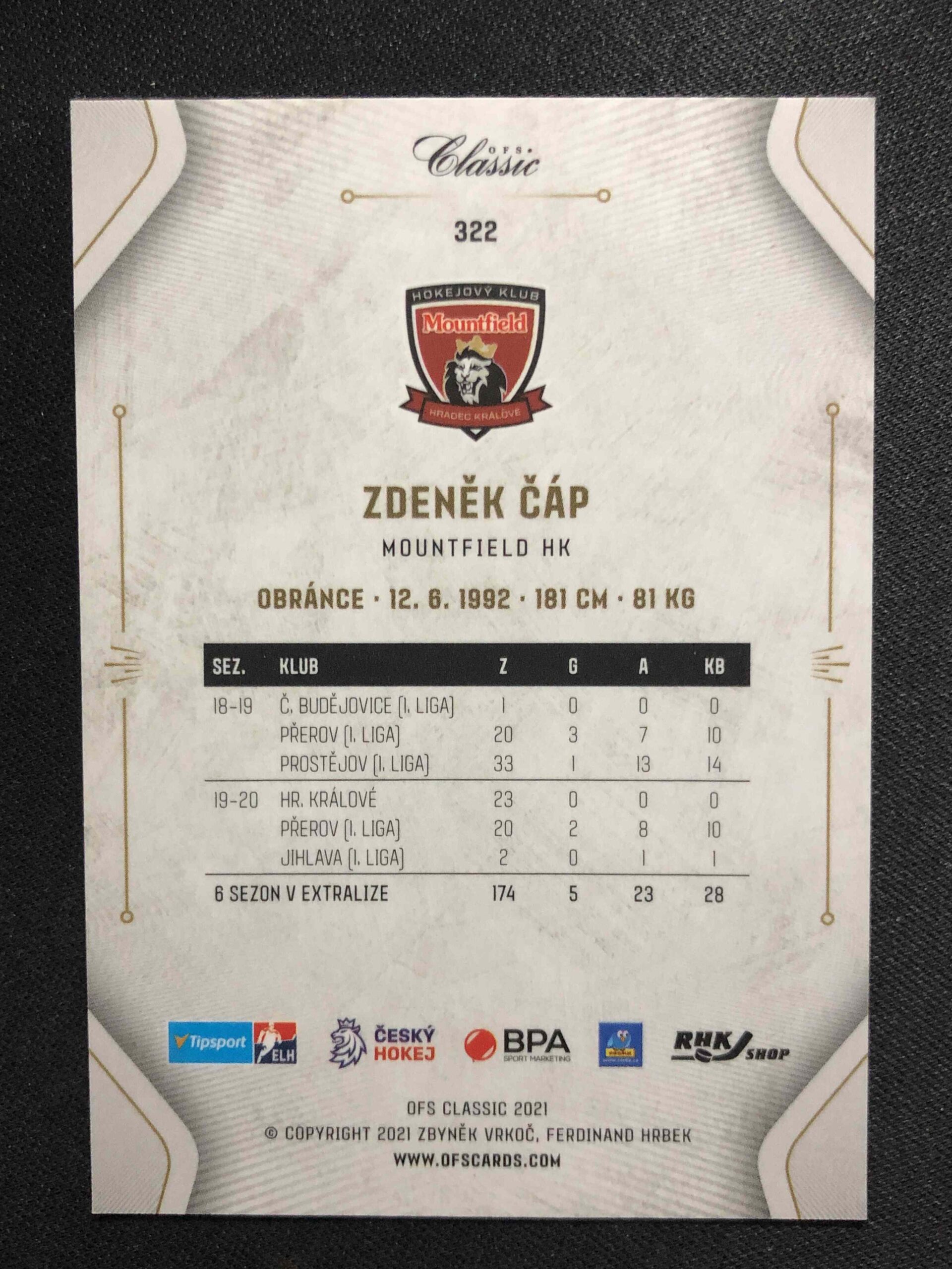 Sběratelská karta 2020/2021 OFS Classic Blue Aquadrop 322 Zdeněk Čáp Paralel 5/7