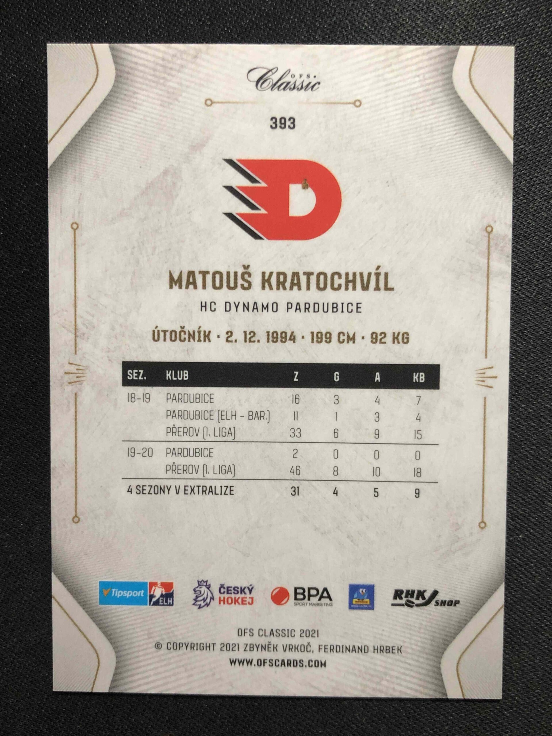 Sběratelská karta 2020/2021 OFS Classic Blue Aquadrop 393 Matouš Kratochvíl Paralel 5/7