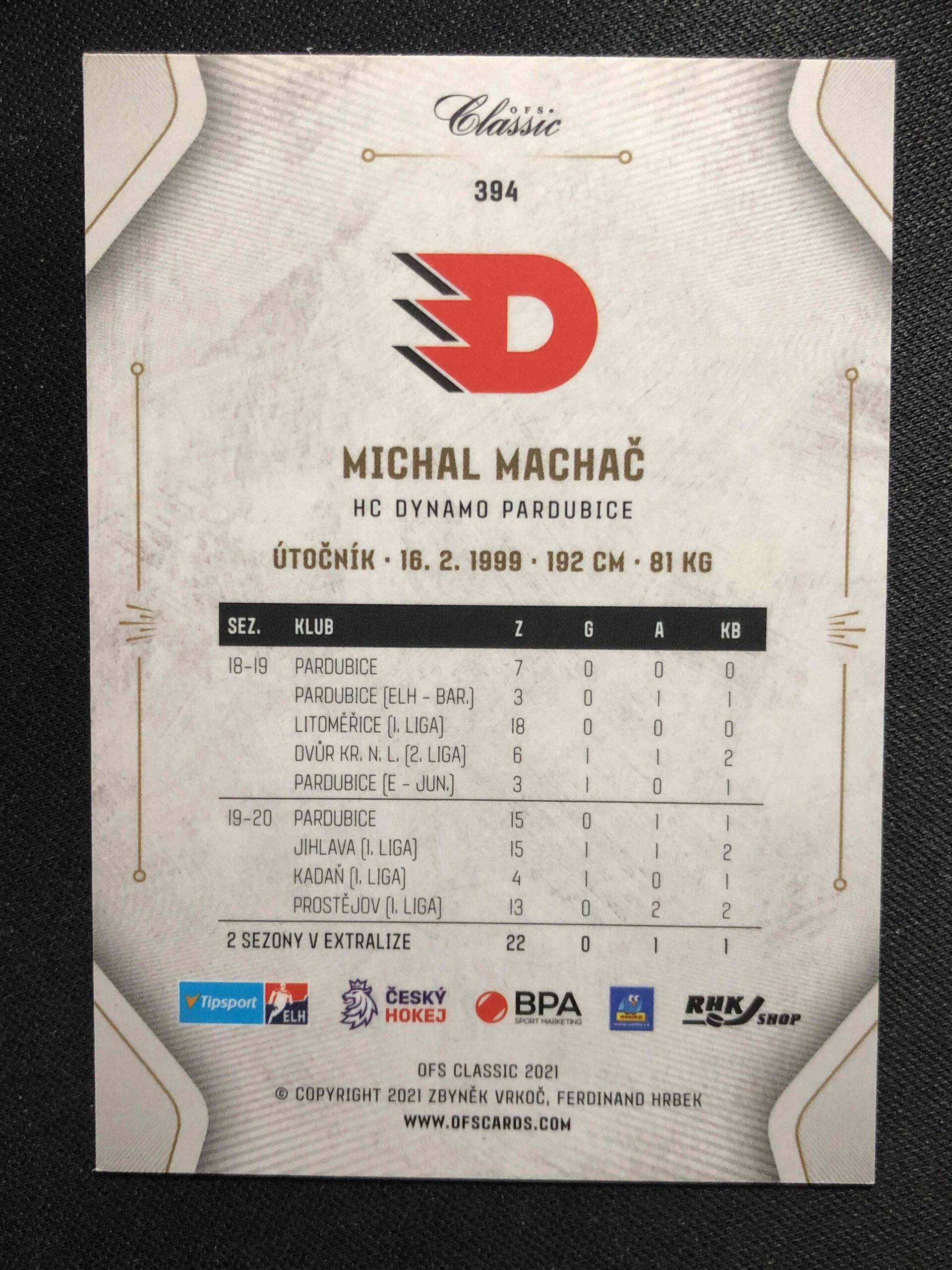 Sběratelská karta 2020/2021 OFS Classic Blue Aquadrop 394 Michal Machač Paralel 5/7