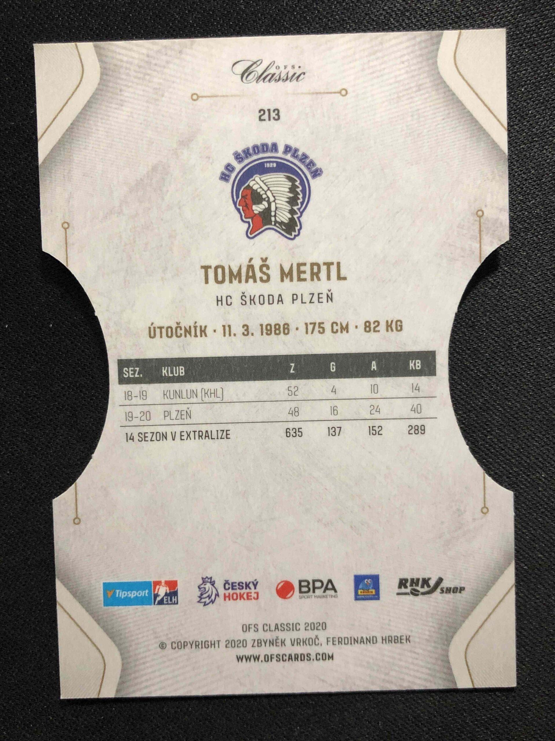 Sběratelská karta 2020/2021 OFS Classic Blue Cut 213 Tomáš Mertl Paralel 01/20