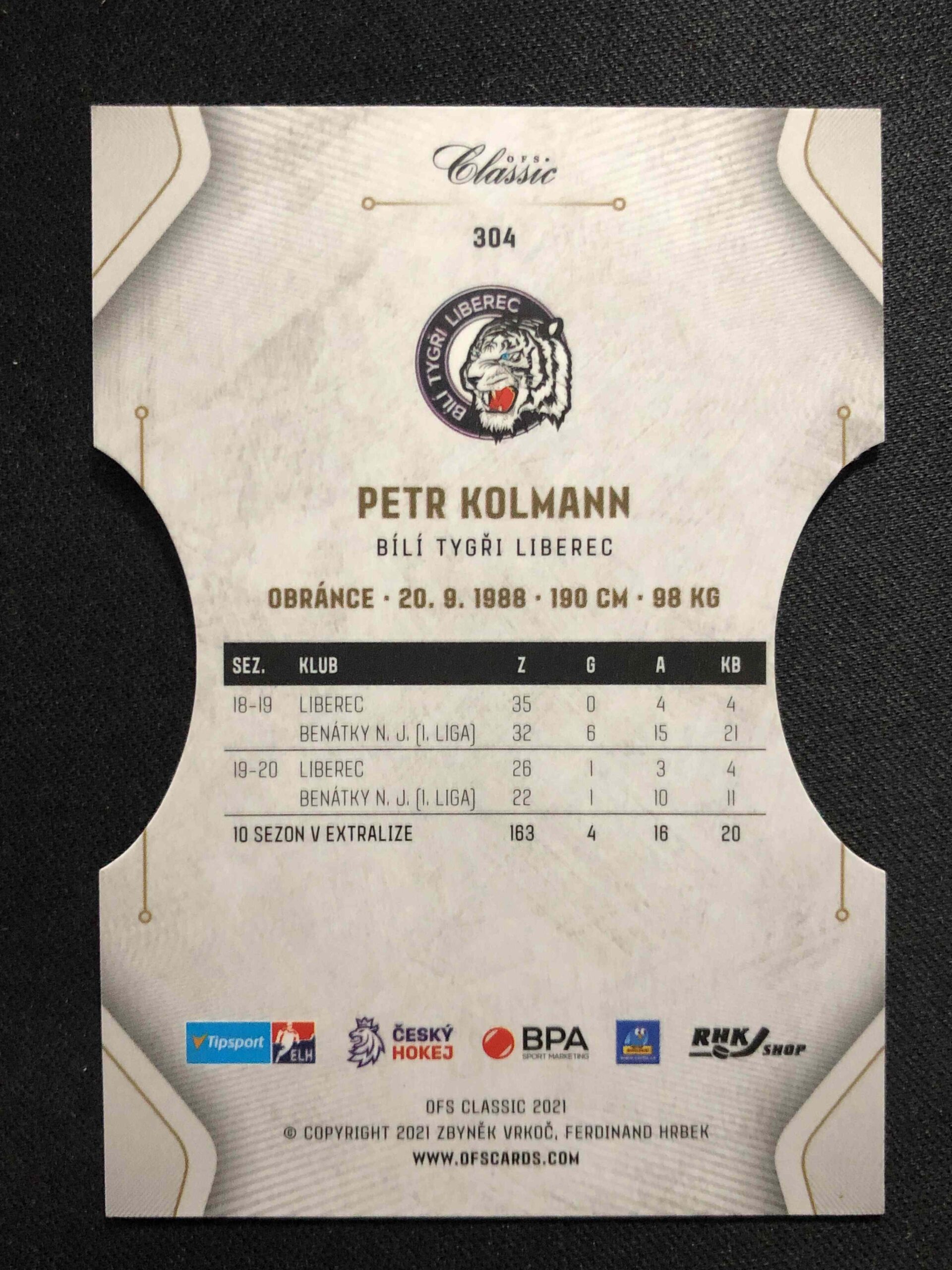 Sběratelská karta 2020/2021 OFS Classic Blue Cut 304 Petr Kolmann Paralel 01/20