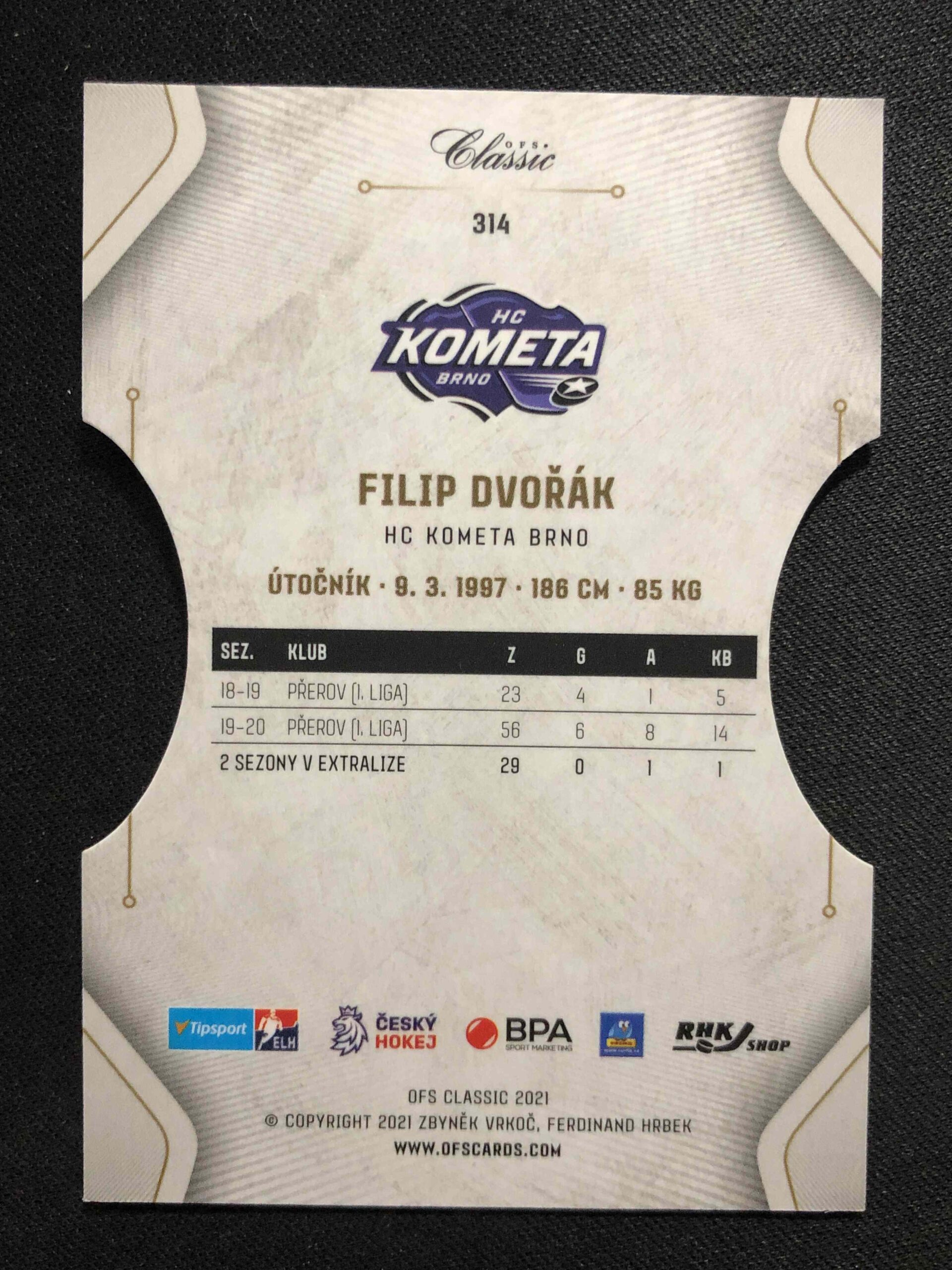 Sběratelská karta 2020/2021 OFS Classic Blue Cut 314 Filip Dvořák Paralel 17/20