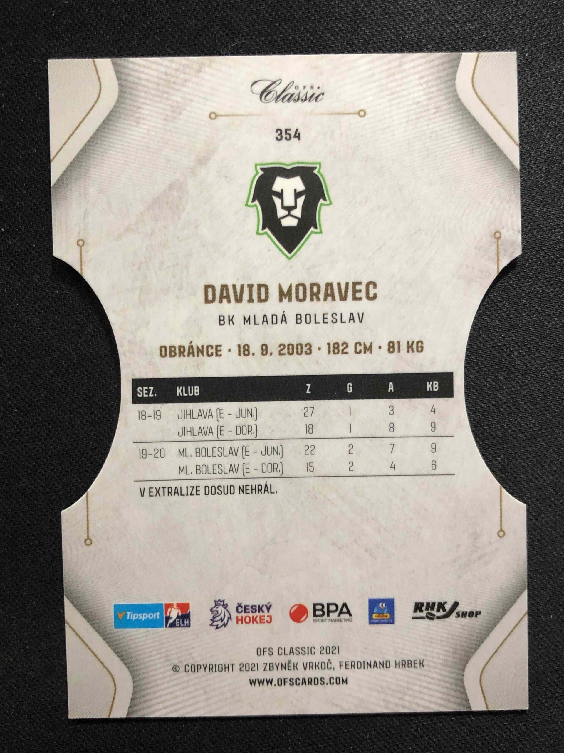 Sběratelská karta 2020/2021 OFS Classic Blue Cut 354 David Moravec Paralel 04/20