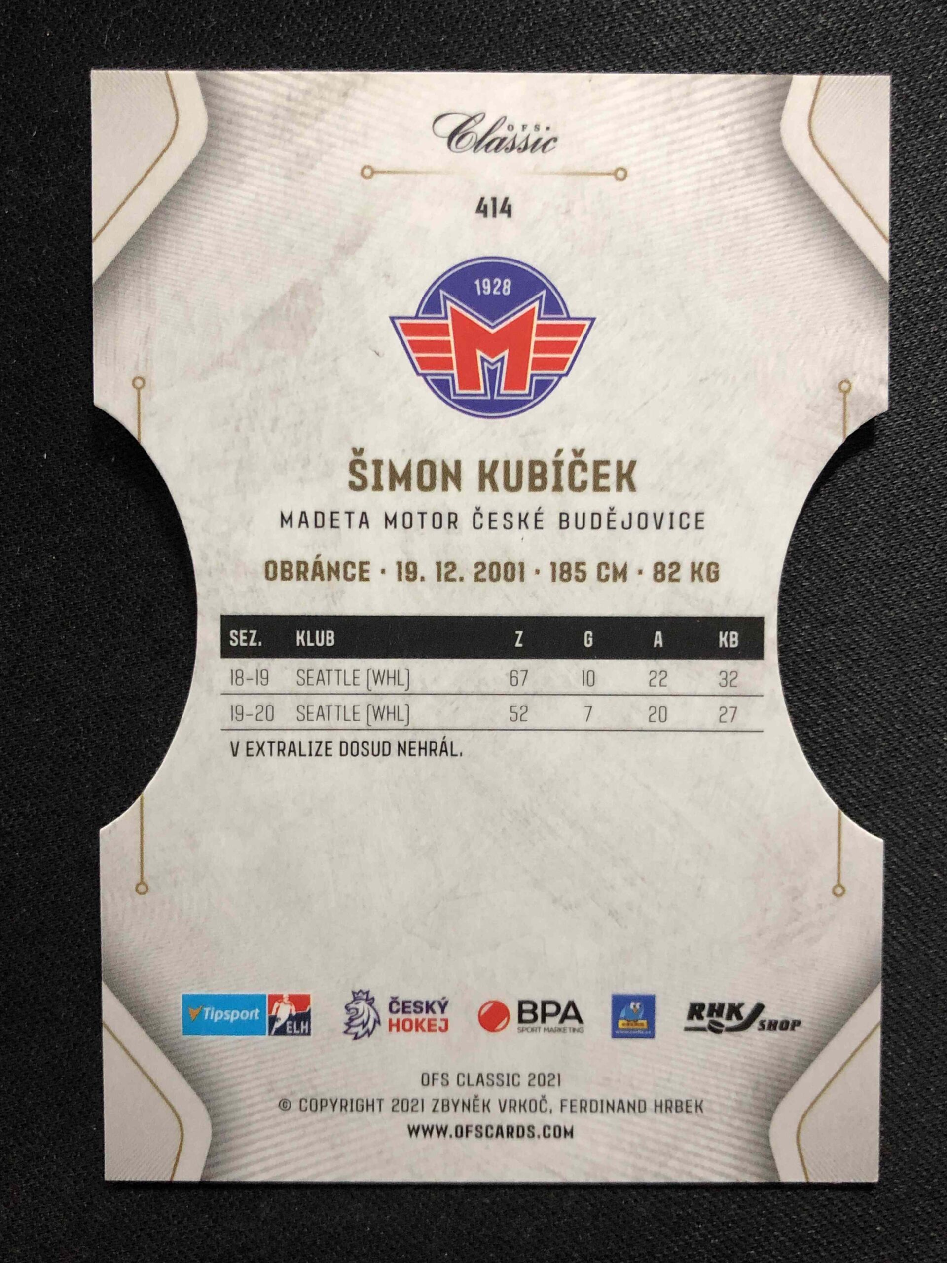 Sběratelská karta 2020/2021 OFS Classic Blue Cut 414 Šimon Kubíček Paralel 04/20