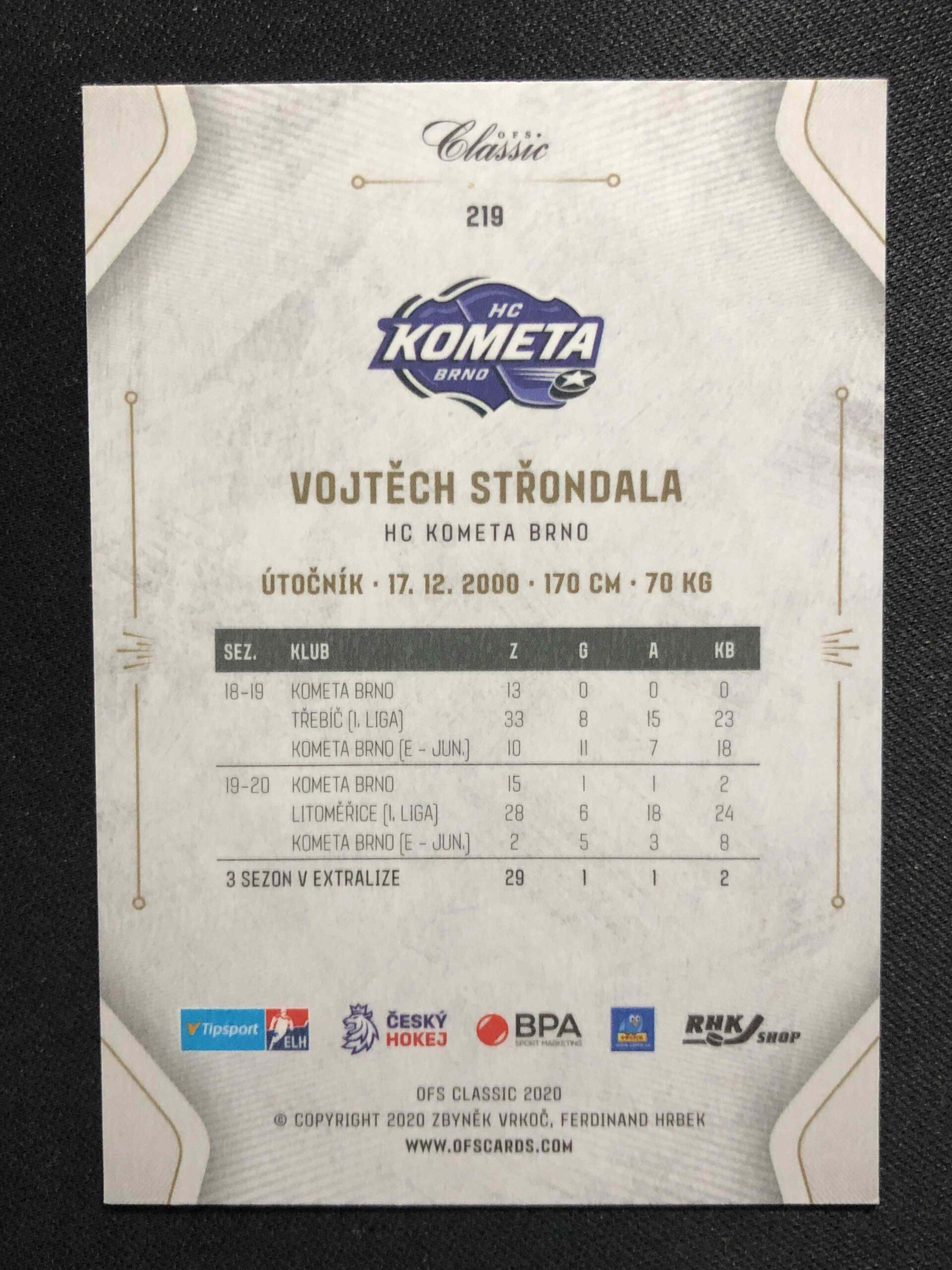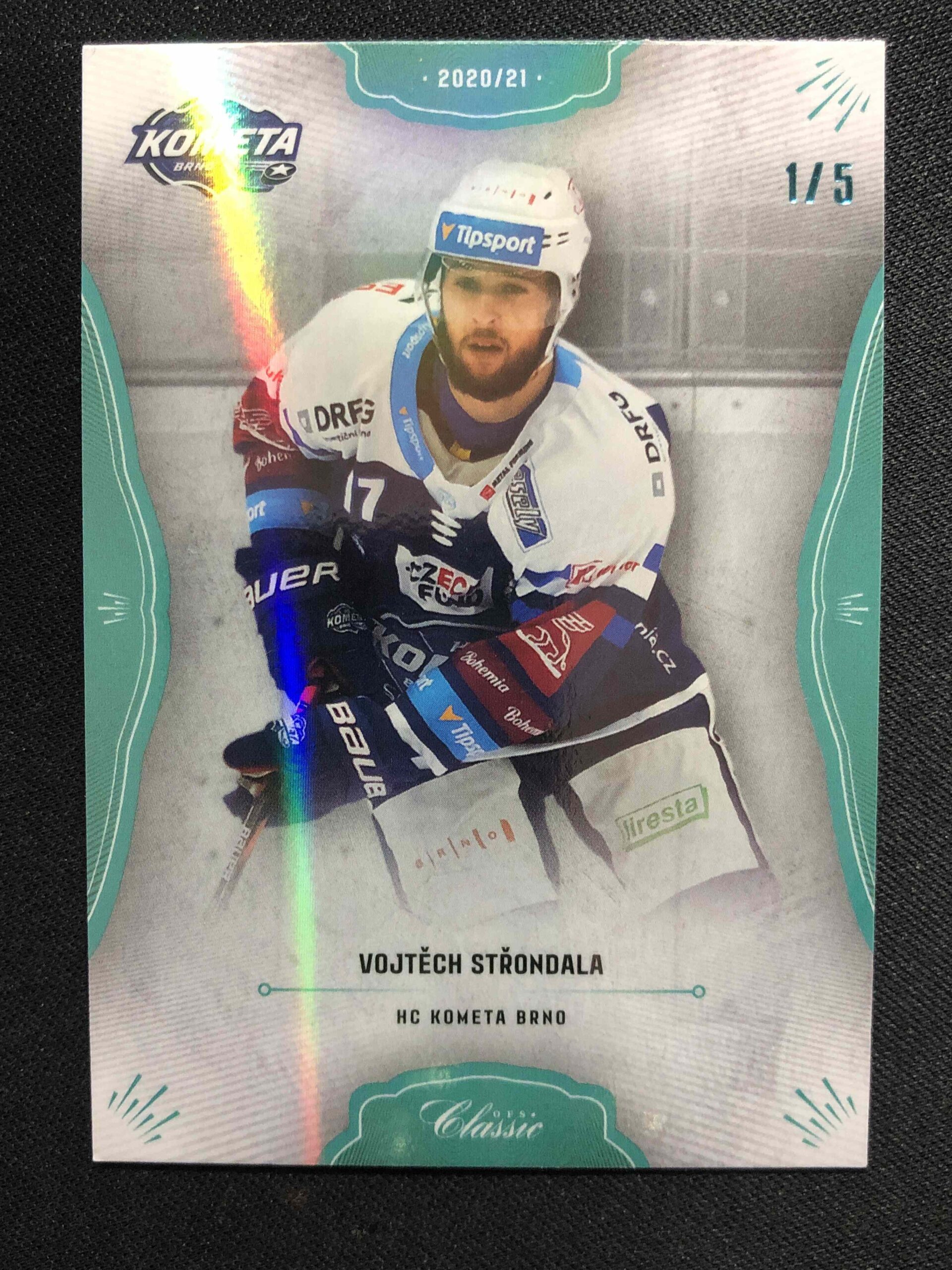 Sběratelská karta 2020/2021 OFS Classic Blue Neon 219 Vojtěch Střondala Paralel 1/5
