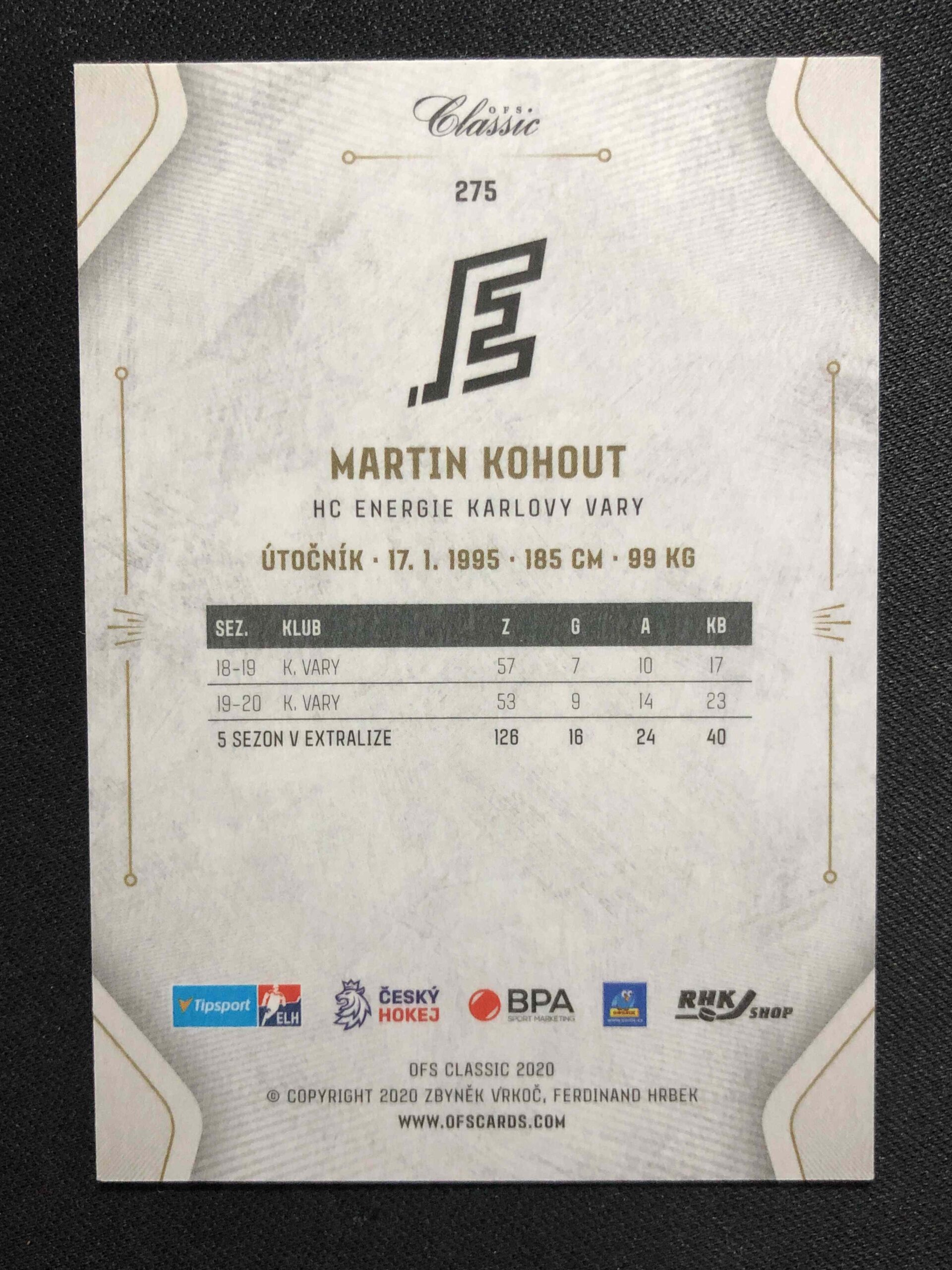 Sběratelská karta 2020/2021 OFS Classic Magma 275 Martin Kohout Paralel 08/10