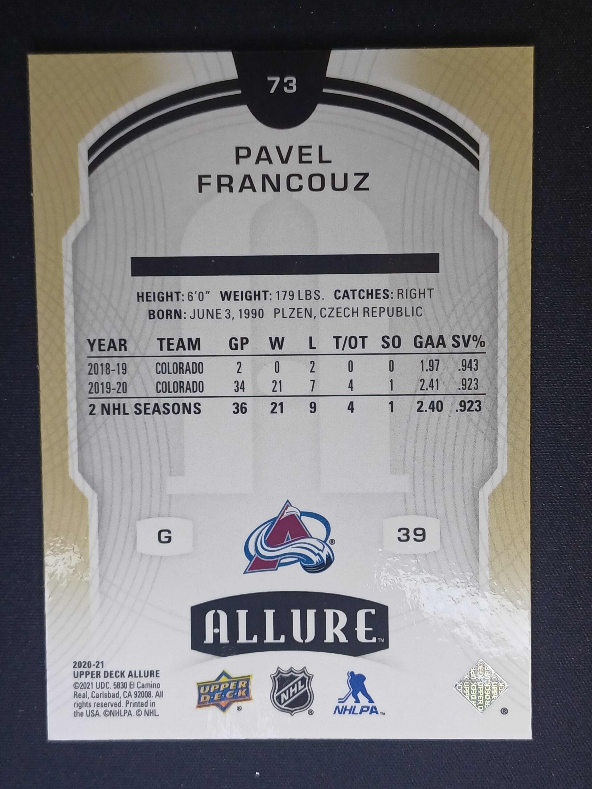 Sběratelská karta 2020/2021 Upper Deck Allure Base 73 Pavel Francouz