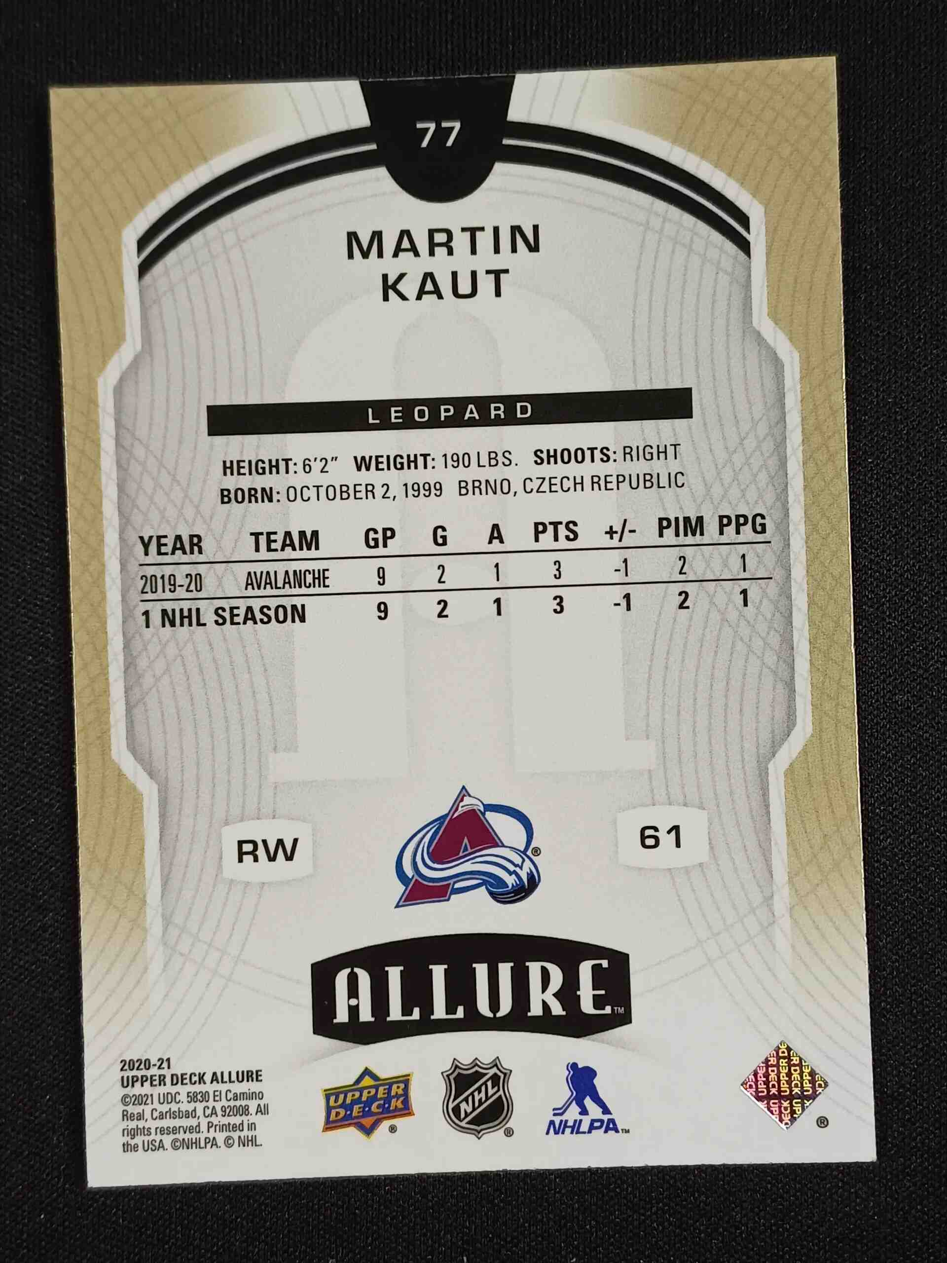 Sběratelská karta 2020/2021 Upper Deck Allure Leopard 77 Martin Kaut Paralel