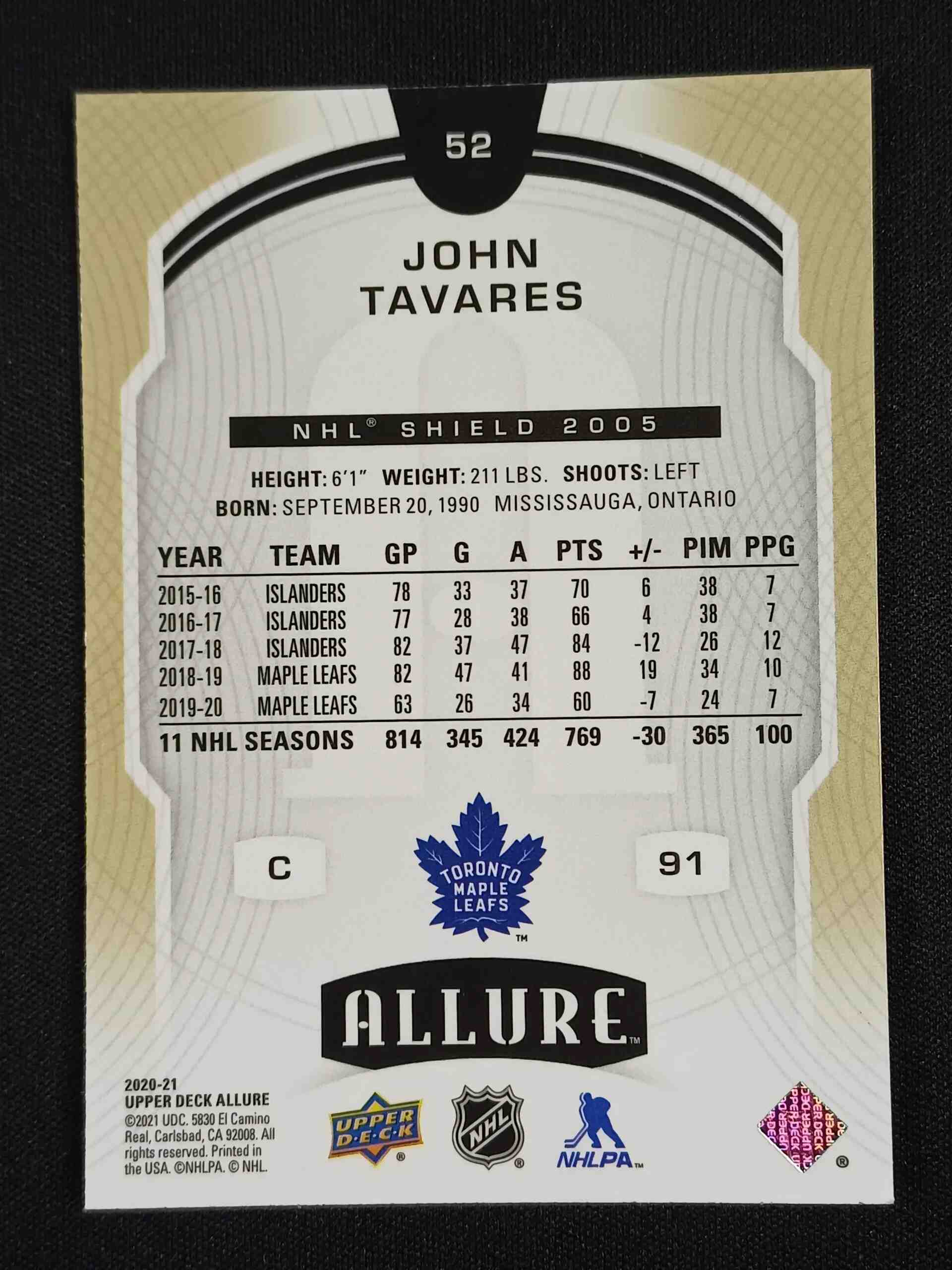 2020/2021 Upper Deck Allure NHL Shield 2005 52 John Tavares Paralel