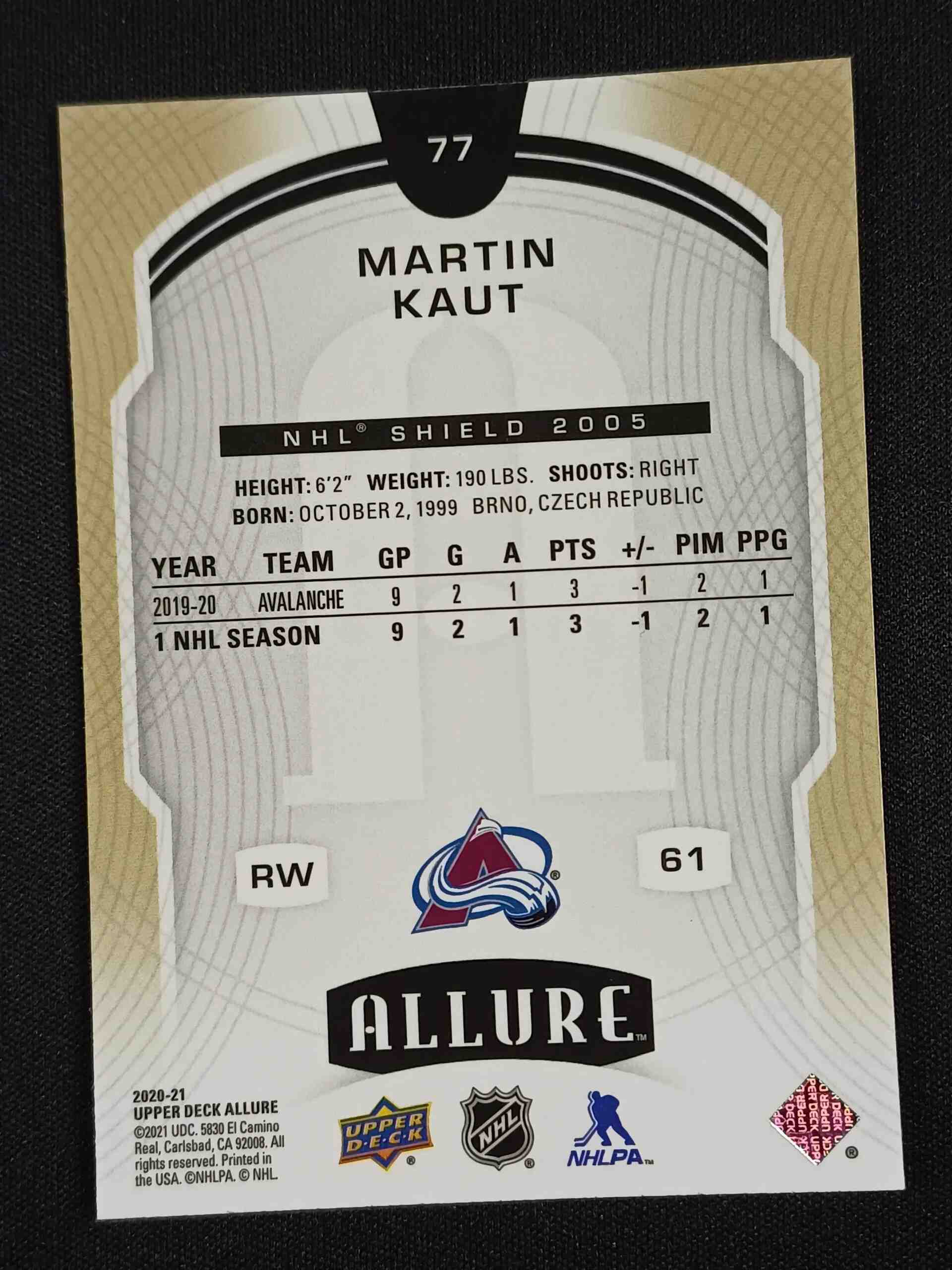 Sběratelská karta 2020/2021 Upper Deck Allure NHL Shield 2005 77 Martin Kaut Paralel