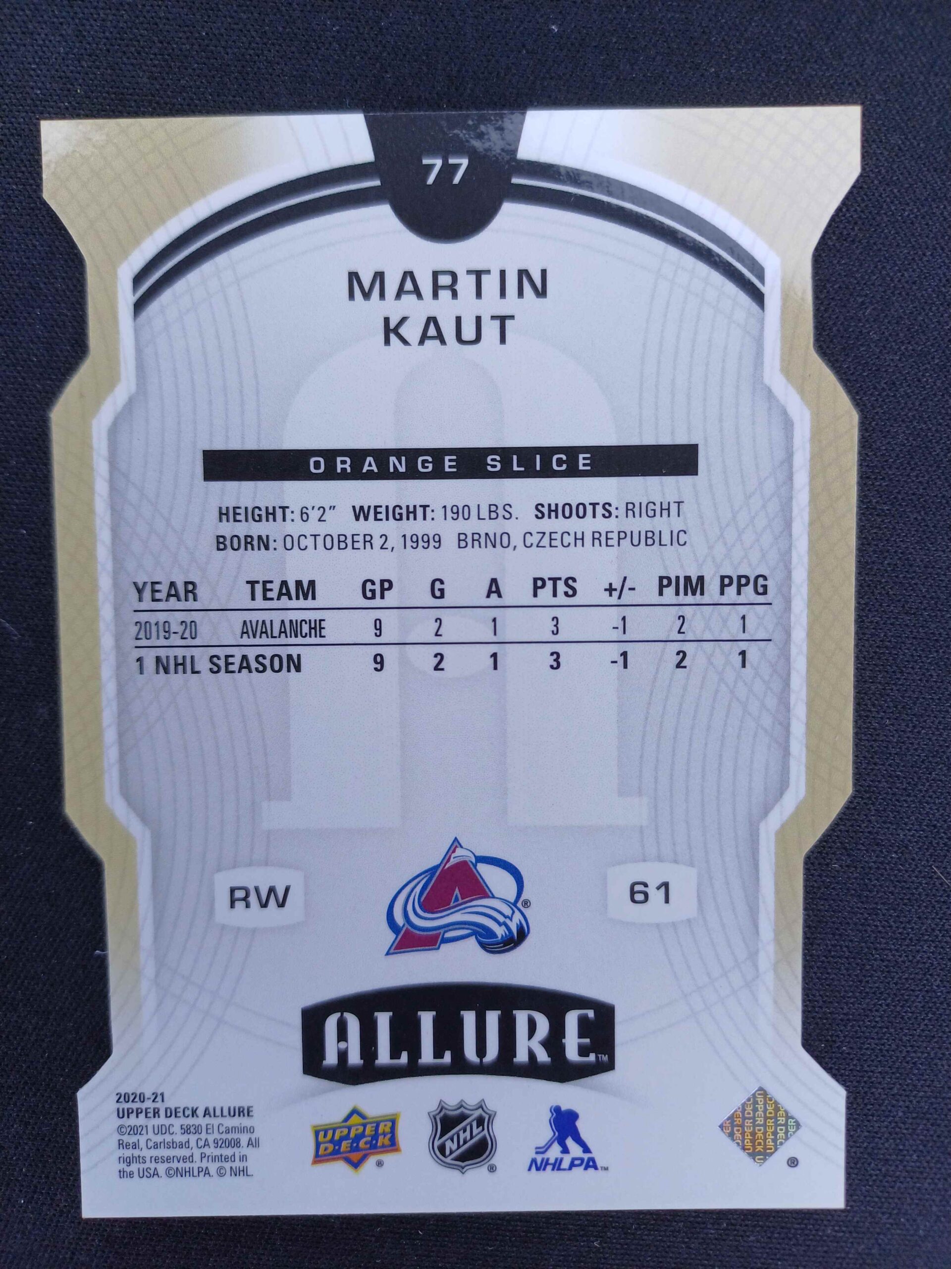 Sběratelská karta 2020/2021 Upper Deck Allure Orange Slice 77 Martin Kaut Paralel